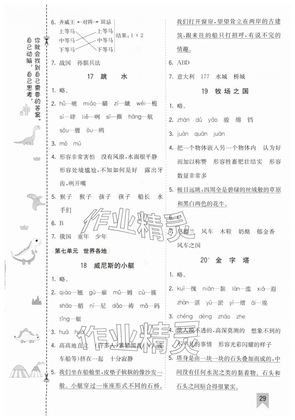 注:目前有些书本章节名称可能整理的还不是很完善,但都是按照顺序排列的,请同学们按照顺序仔细查找。练习册 2025年七彩课堂五年级语文下册人教版河北专版 答案主要是用来给同学们做完题方便对答案用的,请勿直接抄袭。
