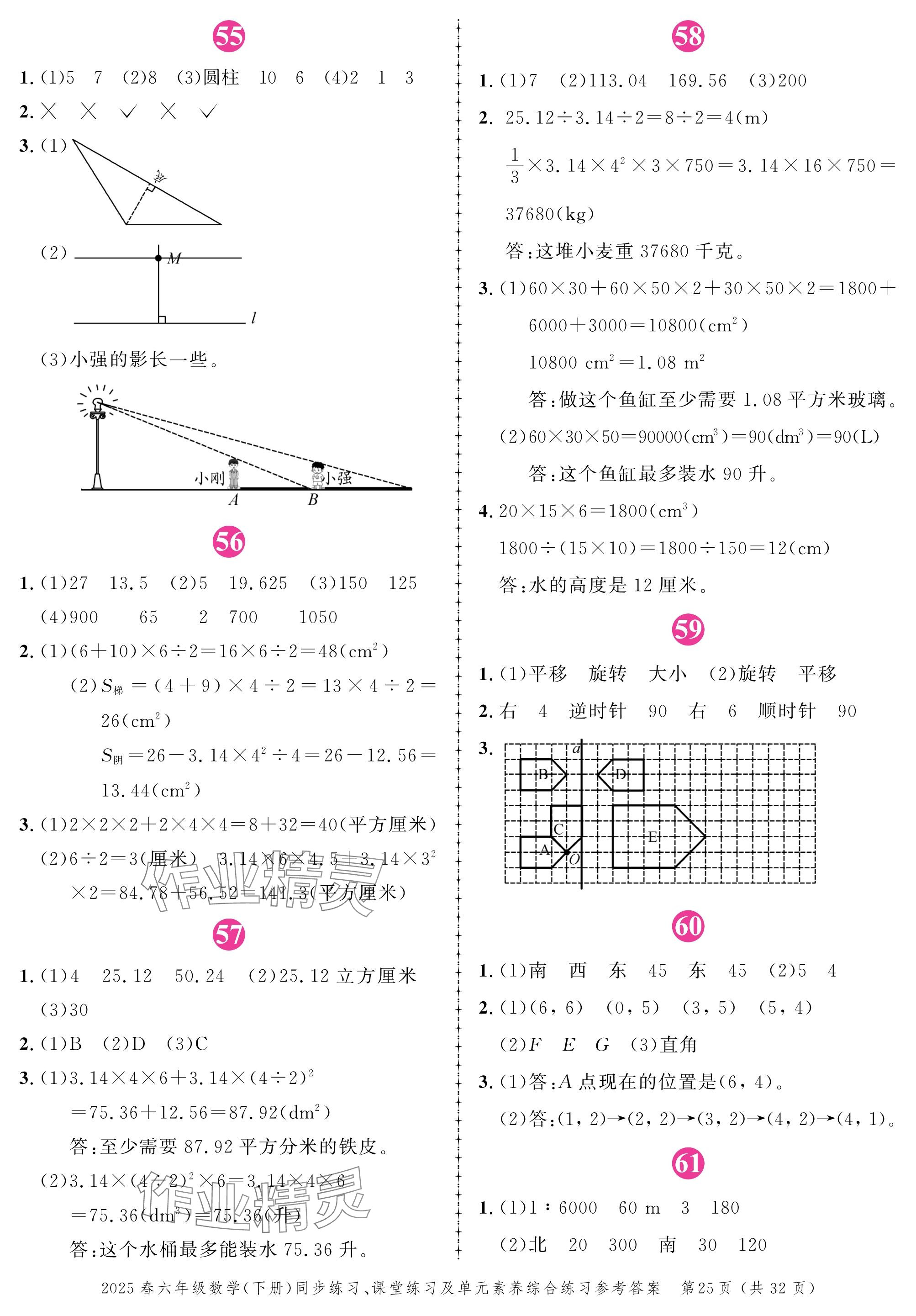 注:目前有些书本章节名称可能整理的还不是很完善,但都是按照顺序排列的,请同学们按照顺序仔细查找。练习册 2025年创新作业同步练习六年级数学下册北师大版 答案主要是用来给同学们做完题方便对答案用的,请勿直接抄袭。