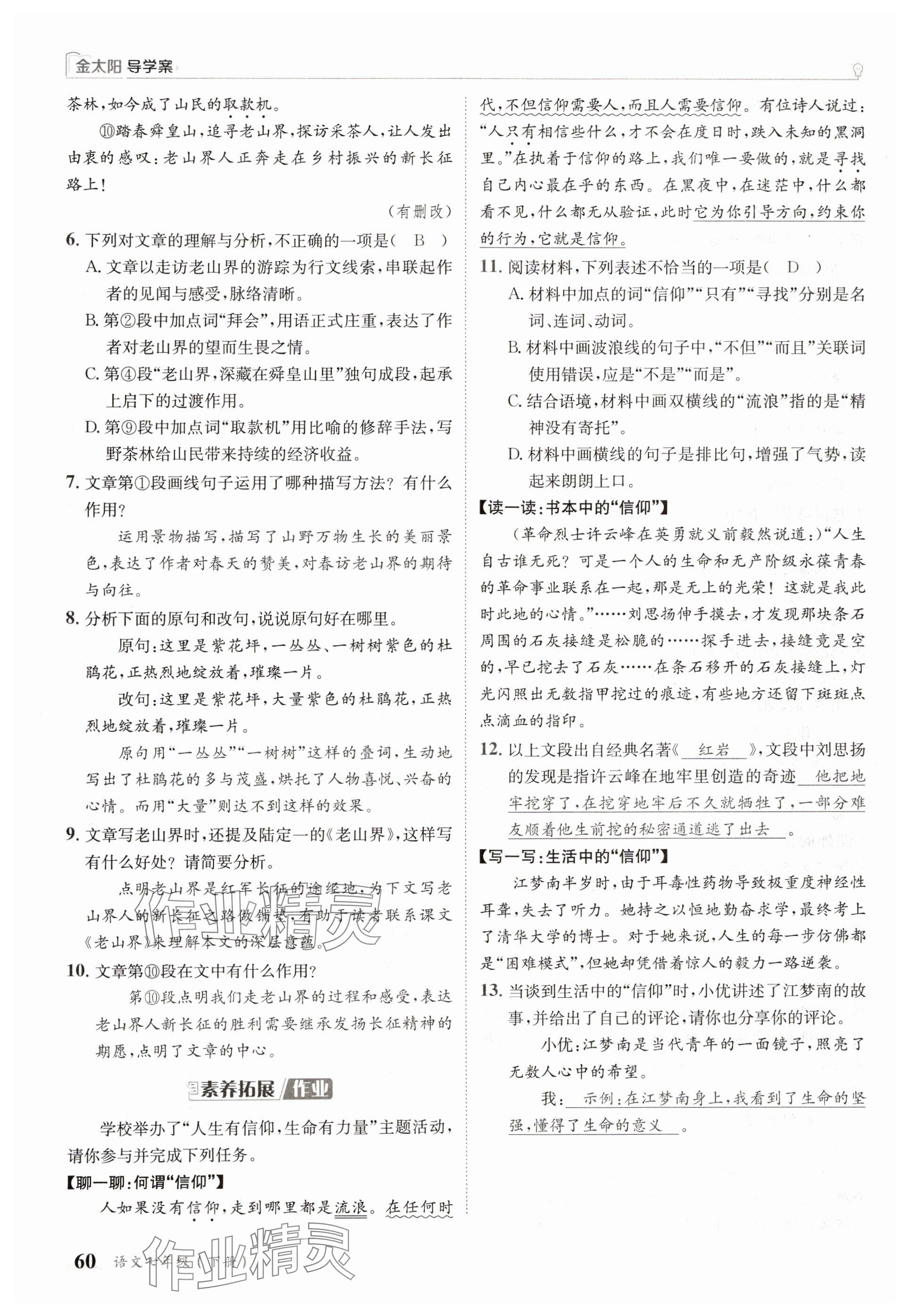 注:目前有些书本章节名称可能整理的还不是很完善,但都是按照顺序排列的,请同学们按照顺序仔细查找。练习册 2025年金太阳导学案七年级语文下册人教版 答案主要是用来给同学们做完题方便对答案用的,请勿直接抄袭。