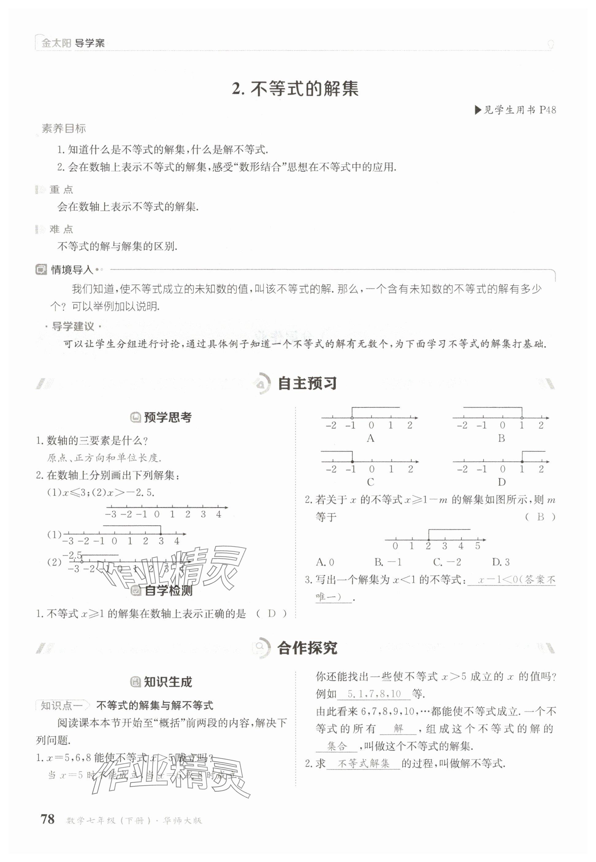 注:目前有些书本章节名称可能整理的还不是很完善,但都是按照顺序排列的,请同学们按照顺序仔细查找。练习册 2025年金太阳导学案七年级数学下册华师大版 答案主要是用来给同学们做完题方便对答案用的,请勿直接抄袭。