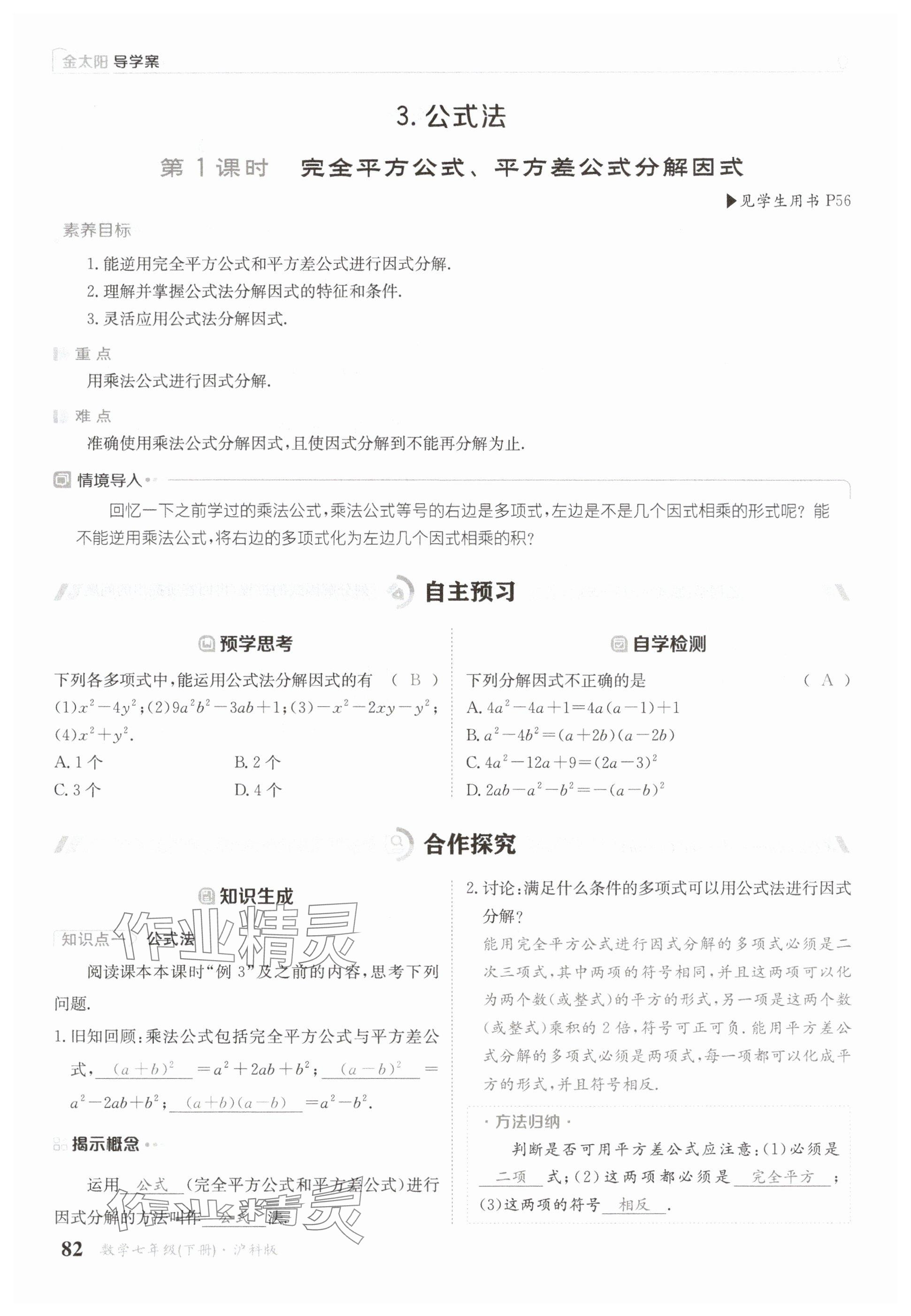 注:目前有些书本章节名称可能整理的还不是很完善,但都是按照顺序排列的,请同学们按照顺序仔细查找。练习册 2025年金太阳导学案七年级数学下册沪科版 答案主要是用来给同学们做完题方便对答案用的,请勿直接抄袭。