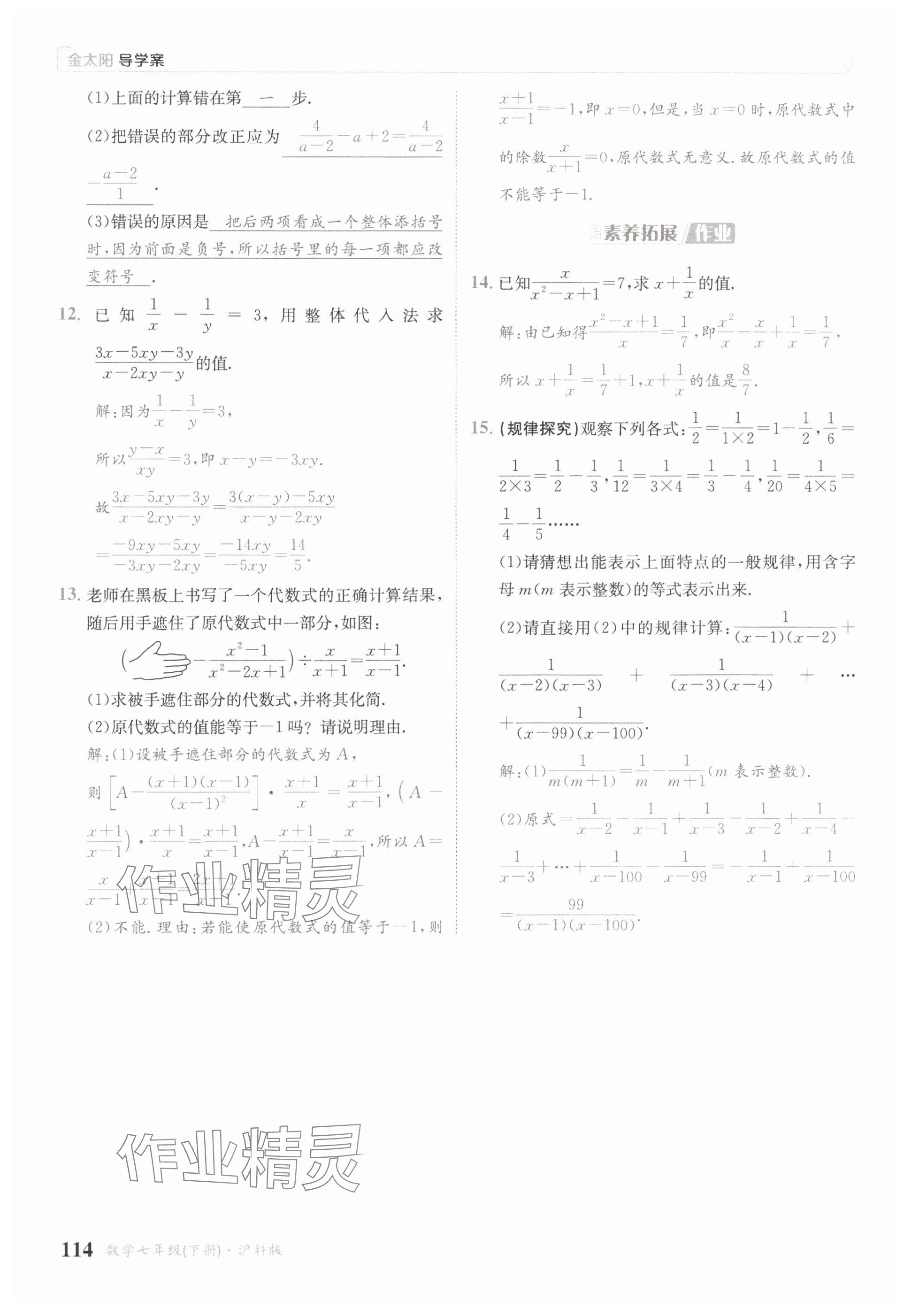 注:目前有些书本章节名称可能整理的还不是很完善,但都是按照顺序排列的,请同学们按照顺序仔细查找。练习册 2025年金太阳导学案七年级数学下册沪科版 答案主要是用来给同学们做完题方便对答案用的,请勿直接抄袭。