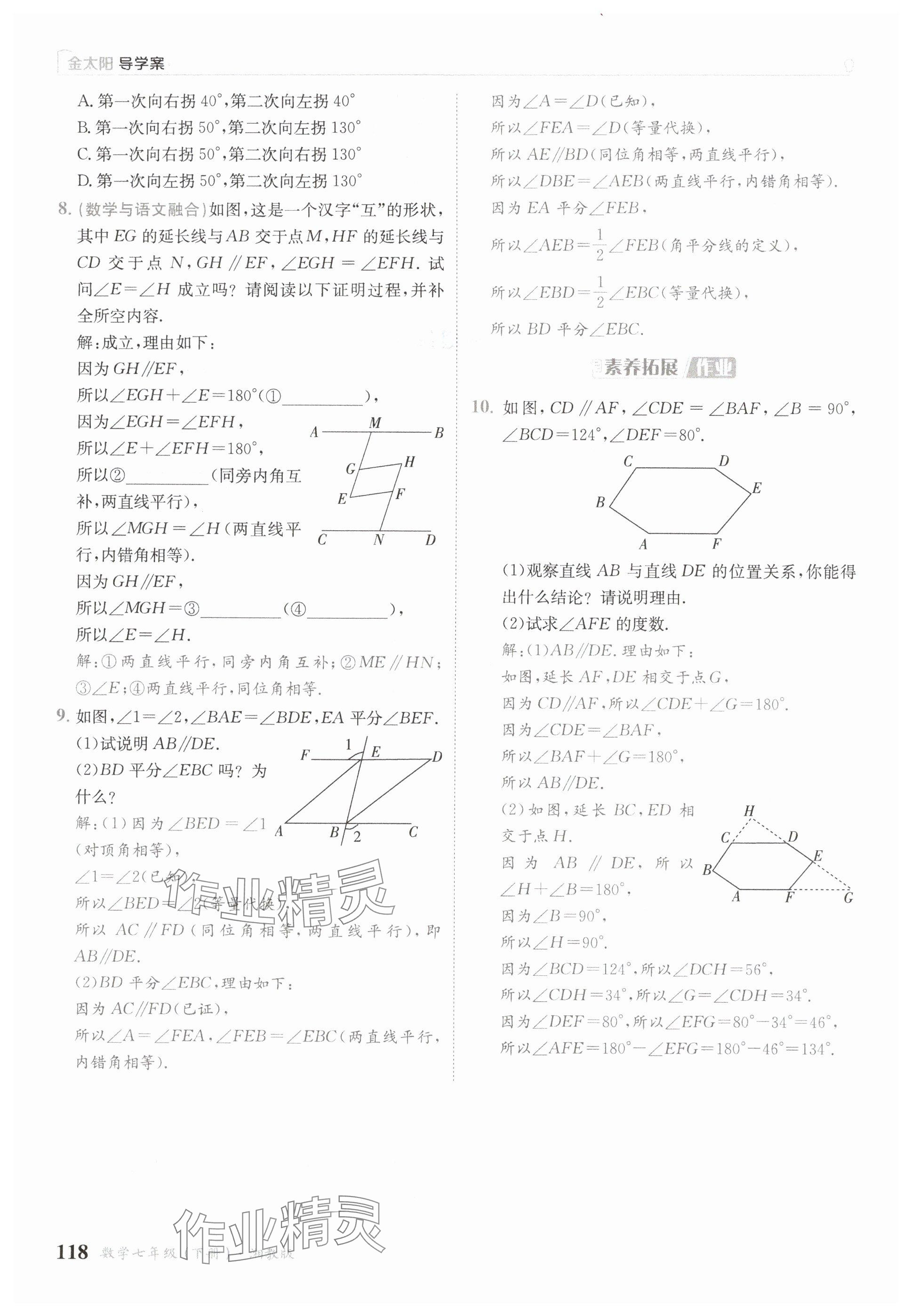 注:目前有些书本章节名称可能整理的还不是很完善,但都是按照顺序排列的,请同学们按照顺序仔细查找。练习册 2025年金太阳导学案七年级数学下册湘教版 答案主要是用来给同学们做完题方便对答案用的,请勿直接抄袭。