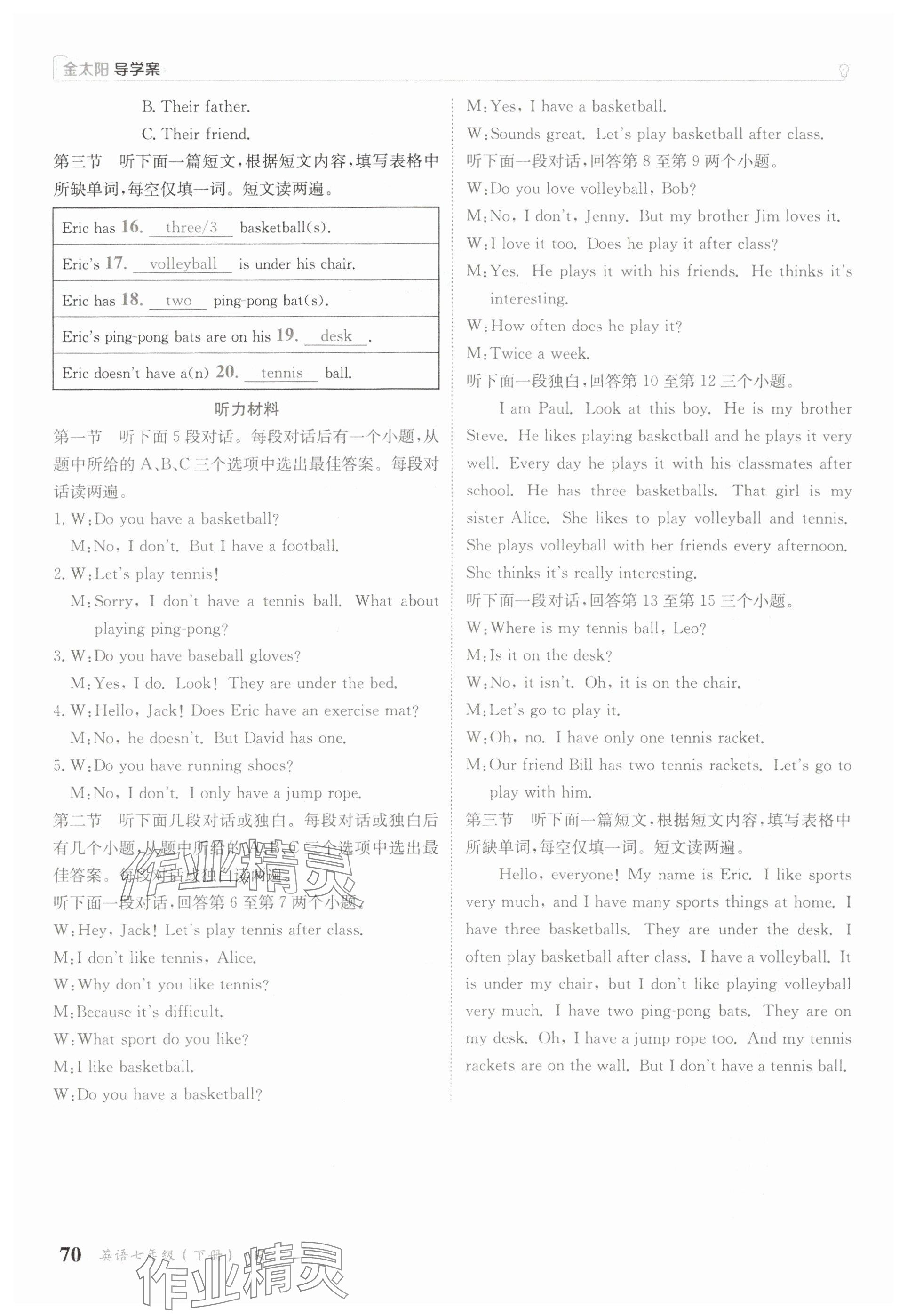 注:目前有些书本章节名称可能整理的还不是很完善,但都是按照顺序排列的,请同学们按照顺序仔细查找。练习册 2025年金太阳导学案七年级英语下册人教版 答案主要是用来给同学们做完题方便对答案用的,请勿直接抄袭。