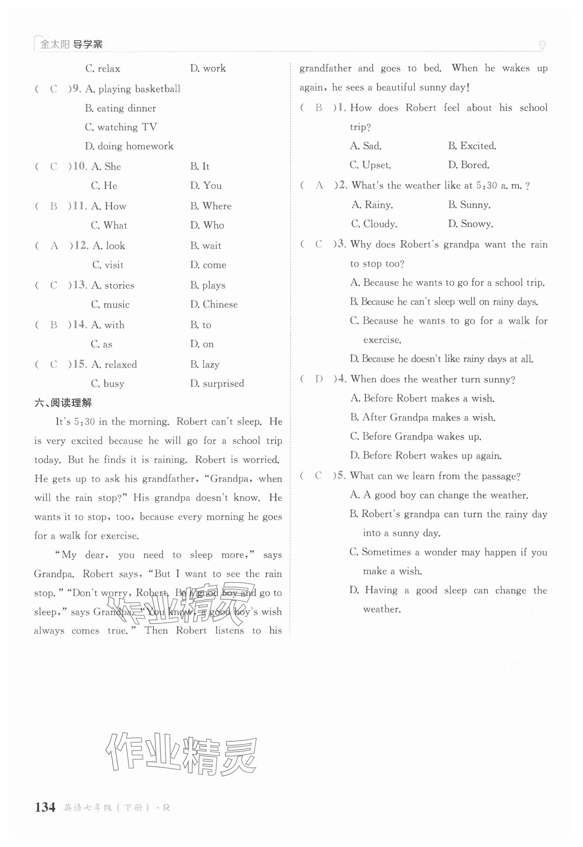 注:目前有些书本章节名称可能整理的还不是很完善,但都是按照顺序排列的,请同学们按照顺序仔细查找。练习册 2025年金太阳导学案七年级英语下册人教版 答案主要是用来给同学们做完题方便对答案用的,请勿直接抄袭。