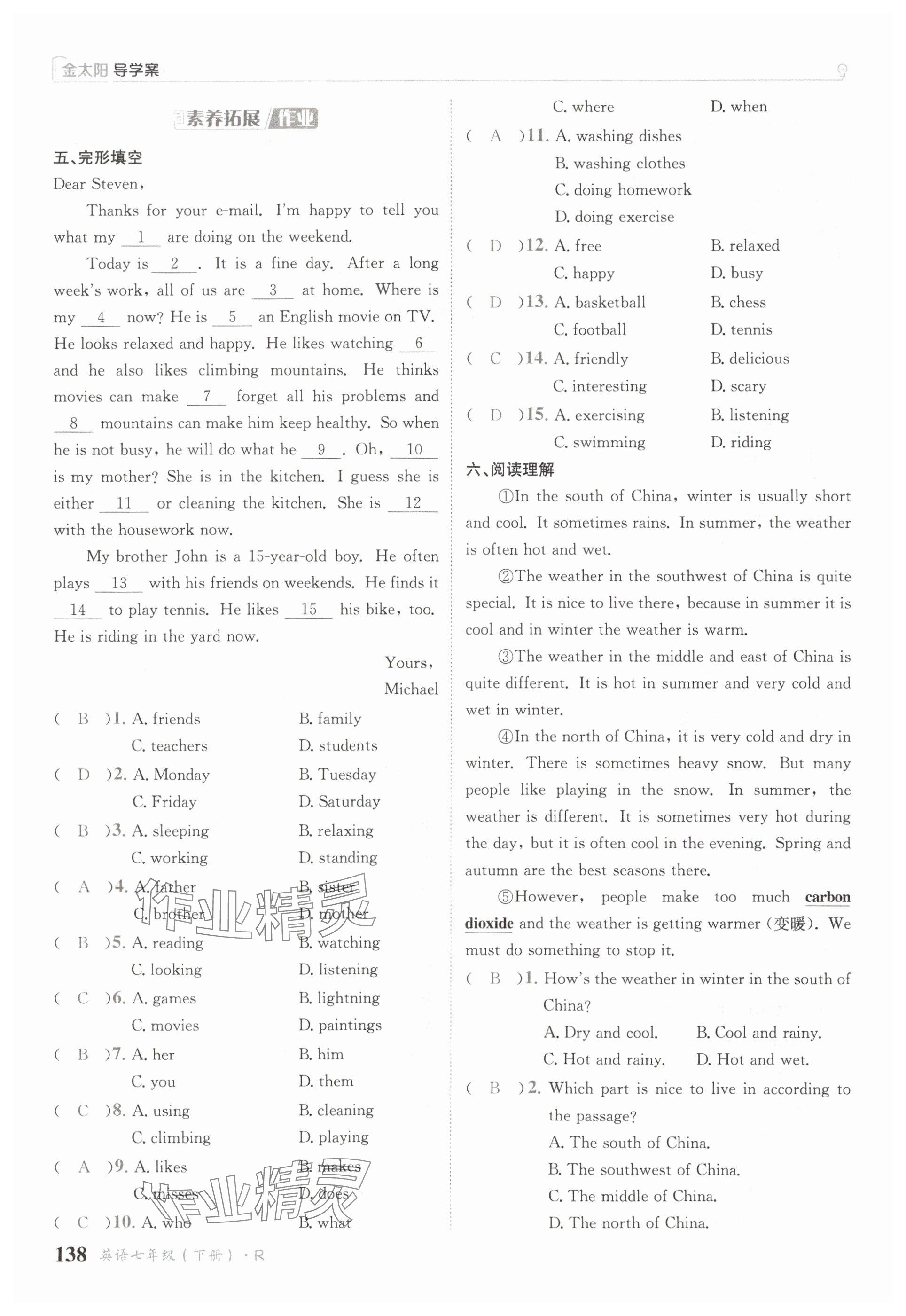 注:目前有些书本章节名称可能整理的还不是很完善,但都是按照顺序排列的,请同学们按照顺序仔细查找。练习册 2025年金太阳导学案七年级英语下册人教版 答案主要是用来给同学们做完题方便对答案用的,请勿直接抄袭。