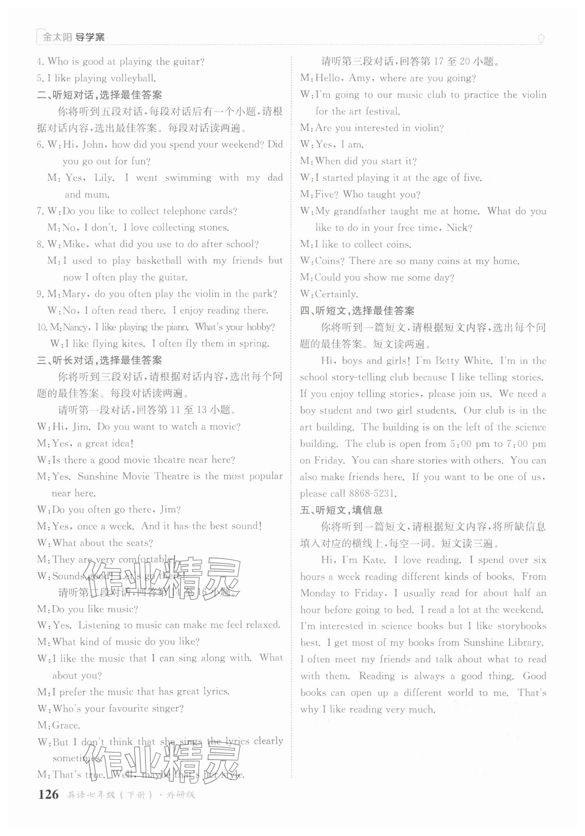 注:目前有些书本章节名称可能整理的还不是很完善,但都是按照顺序排列的,请同学们按照顺序仔细查找。练习册 2025年金太阳导学案七年级英语下册外研版 答案主要是用来给同学们做完题方便对答案用的,请勿直接抄袭。