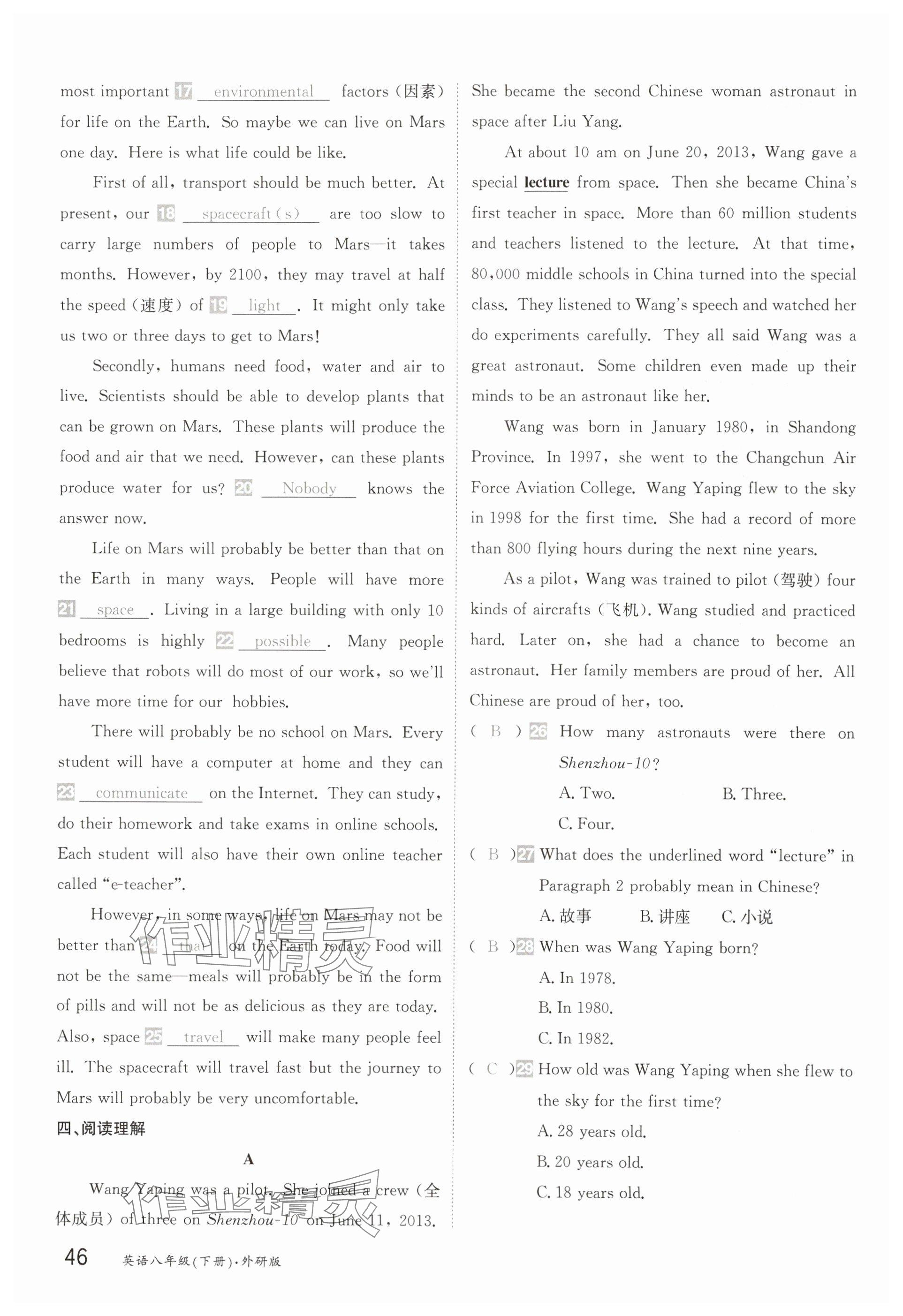 注:目前有些书本章节名称可能整理的还不是很完善,但都是按照顺序排列的,请同学们按照顺序仔细查找。练习册 2025年金太阳导学案八年级英语下册外研版 答案主要是用来给同学们做完题方便对答案用的,请勿直接抄袭。