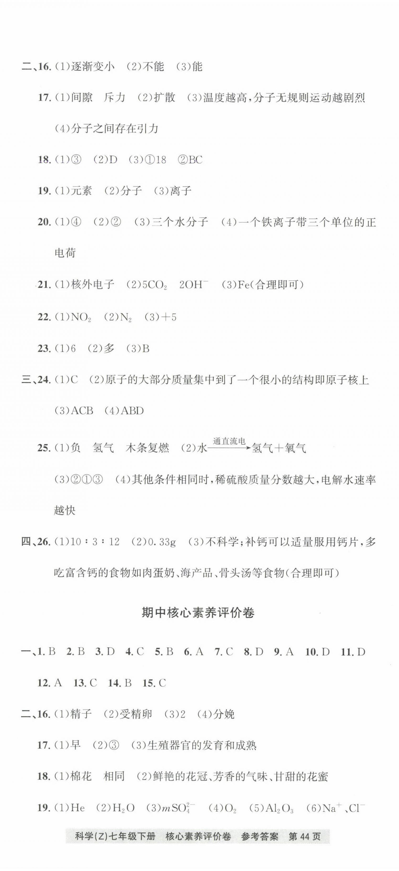 注:目前有些书本章节名称可能整理的还不是很完善,但都是按照顺序排列的,请同学们按照顺序仔细查找。练习册 2025年习题e百课时训练七年级科学下册浙教版 答案主要是用来给同学们做完题方便对答案用的,请勿直接抄袭。