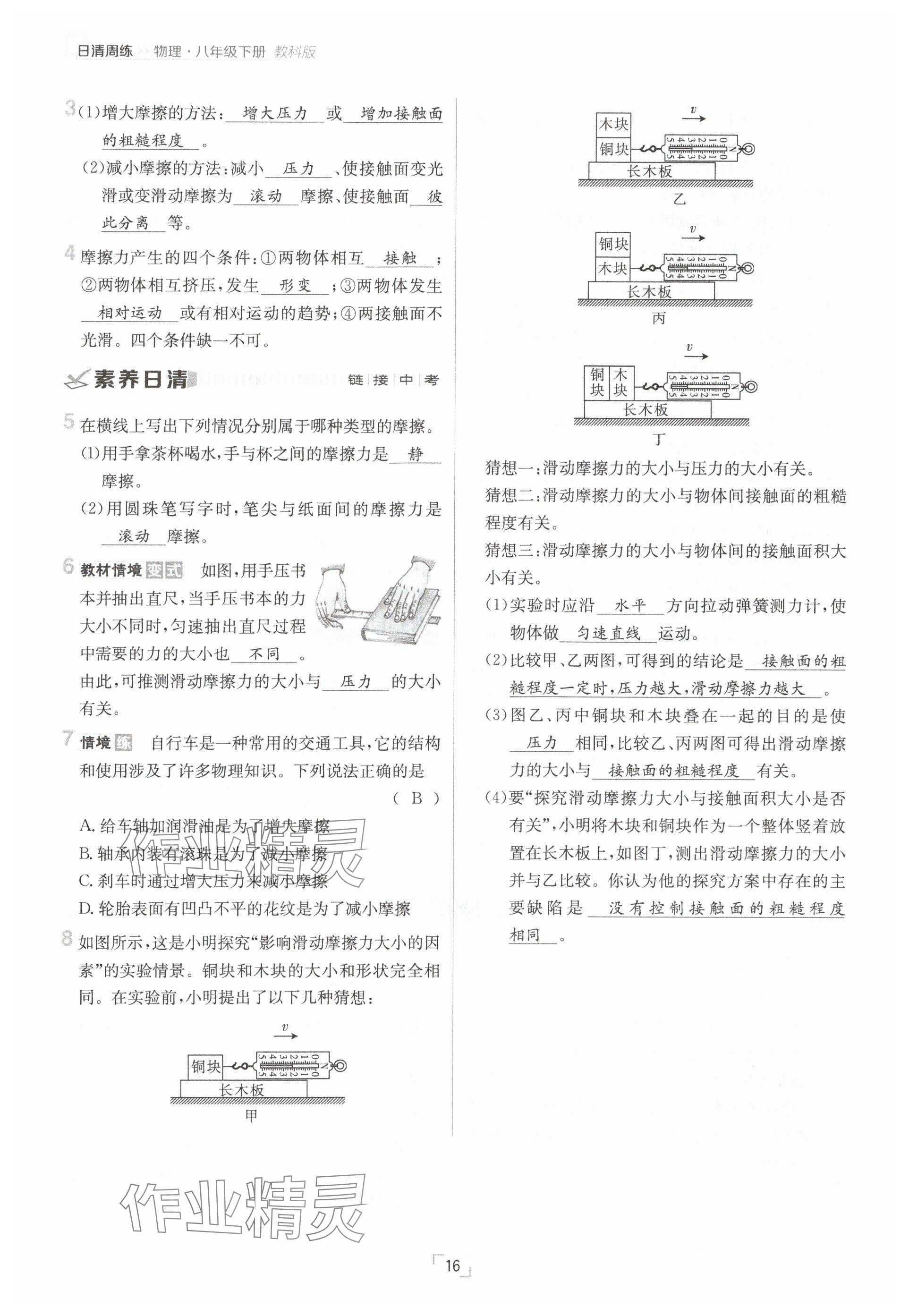 注:目前有些书本章节名称可能整理的还不是很完善,但都是按照顺序排列的,请同学们按照顺序仔细查找。练习册 2025年日清周练八年级物理下册教科版 答案主要是用来给同学们做完题方便对答案用的,请勿直接抄袭。
