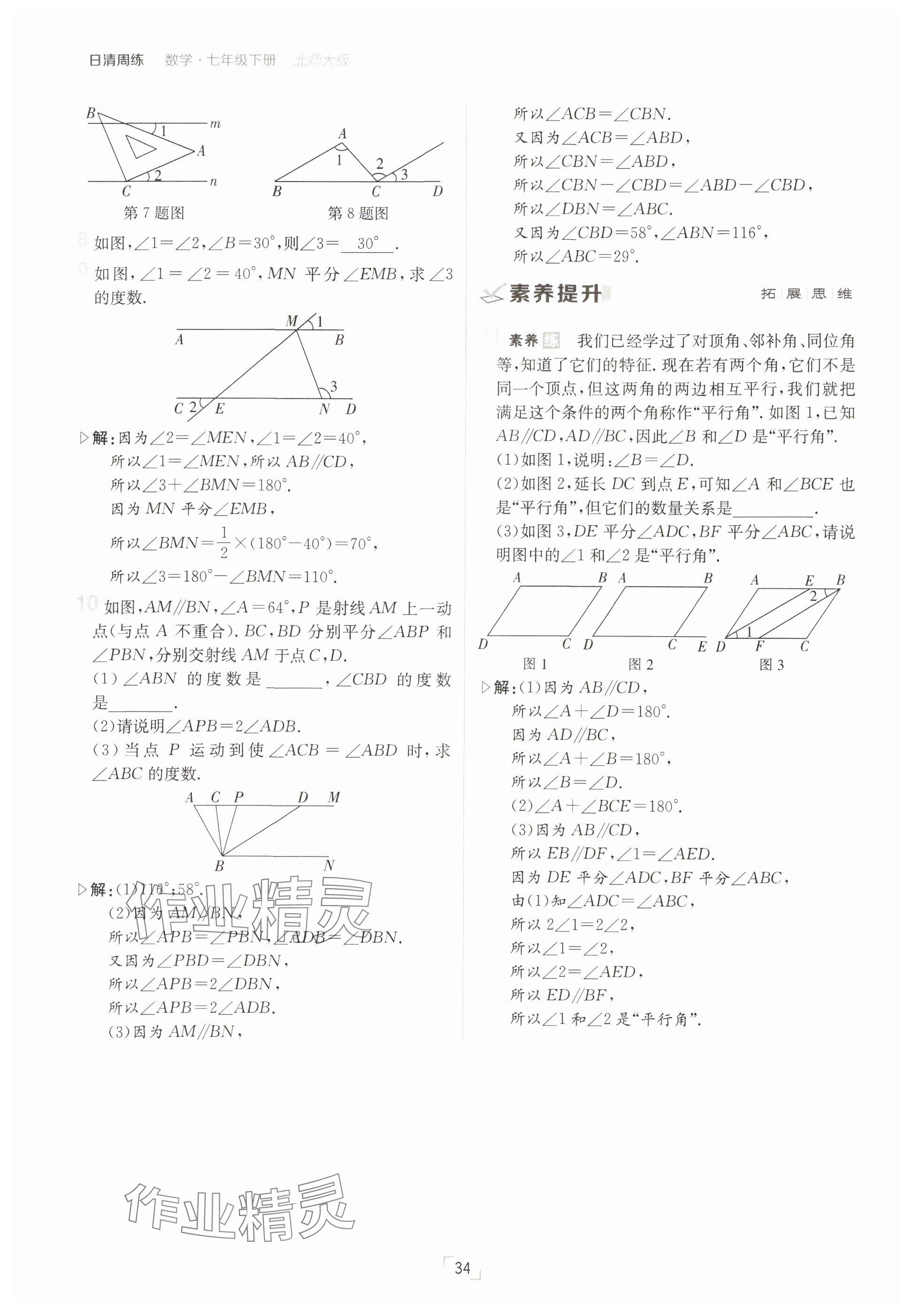 注:目前有些书本章节名称可能整理的还不是很完善,但都是按照顺序排列的,请同学们按照顺序仔细查找。练习册 2025年日清周练七年级数学下册北师大版 答案主要是用来给同学们做完题方便对答案用的,请勿直接抄袭。