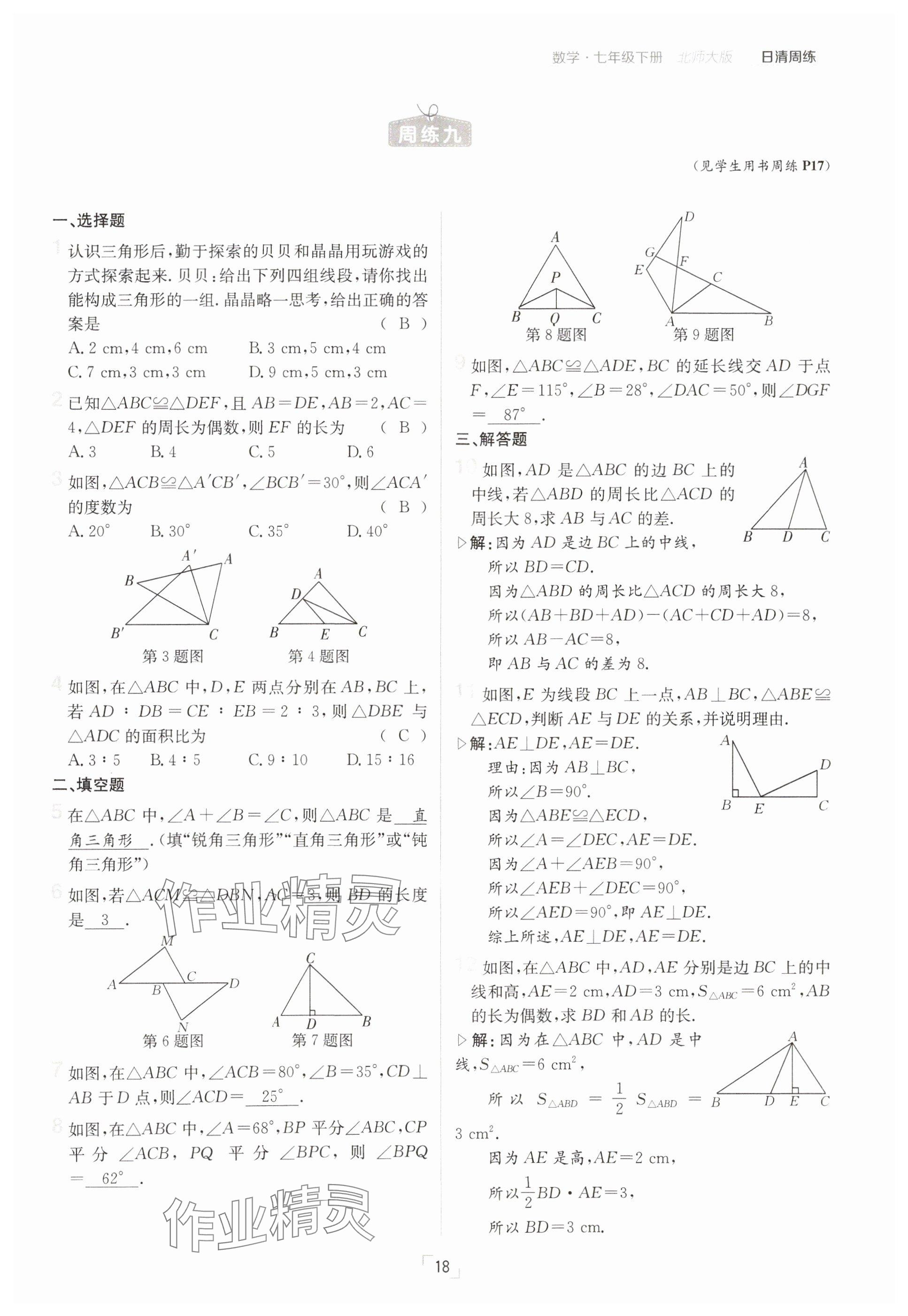 注:目前有些书本章节名称可能整理的还不是很完善,但都是按照顺序排列的,请同学们按照顺序仔细查找。练习册 2025年日清周练七年级数学下册北师大版 答案主要是用来给同学们做完题方便对答案用的,请勿直接抄袭。