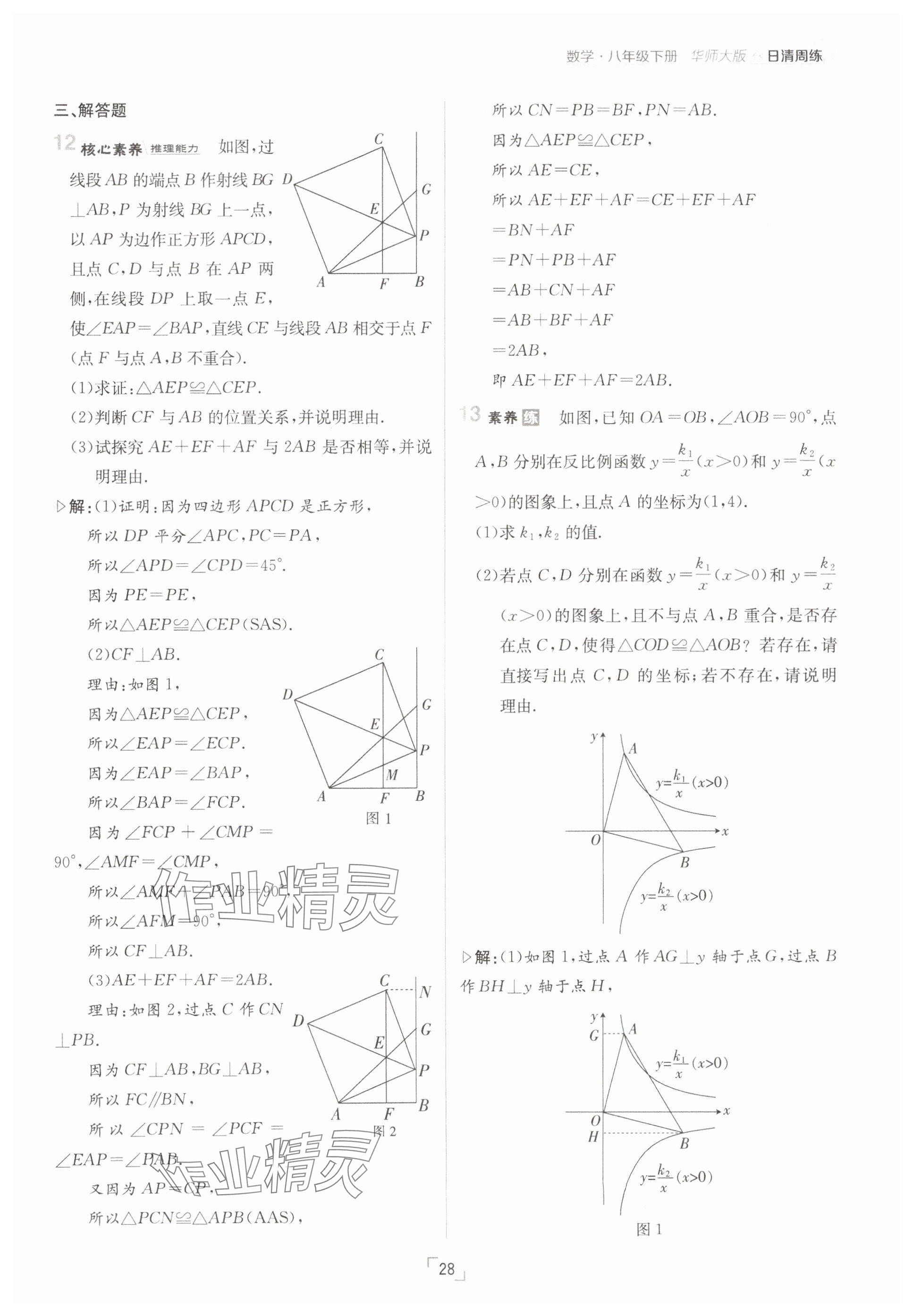 注:目前有些书本章节名称可能整理的还不是很完善,但都是按照顺序排列的,请同学们按照顺序仔细查找。练习册 2025年日清周练八年级数学下册华师大版 答案主要是用来给同学们做完题方便对答案用的,请勿直接抄袭。