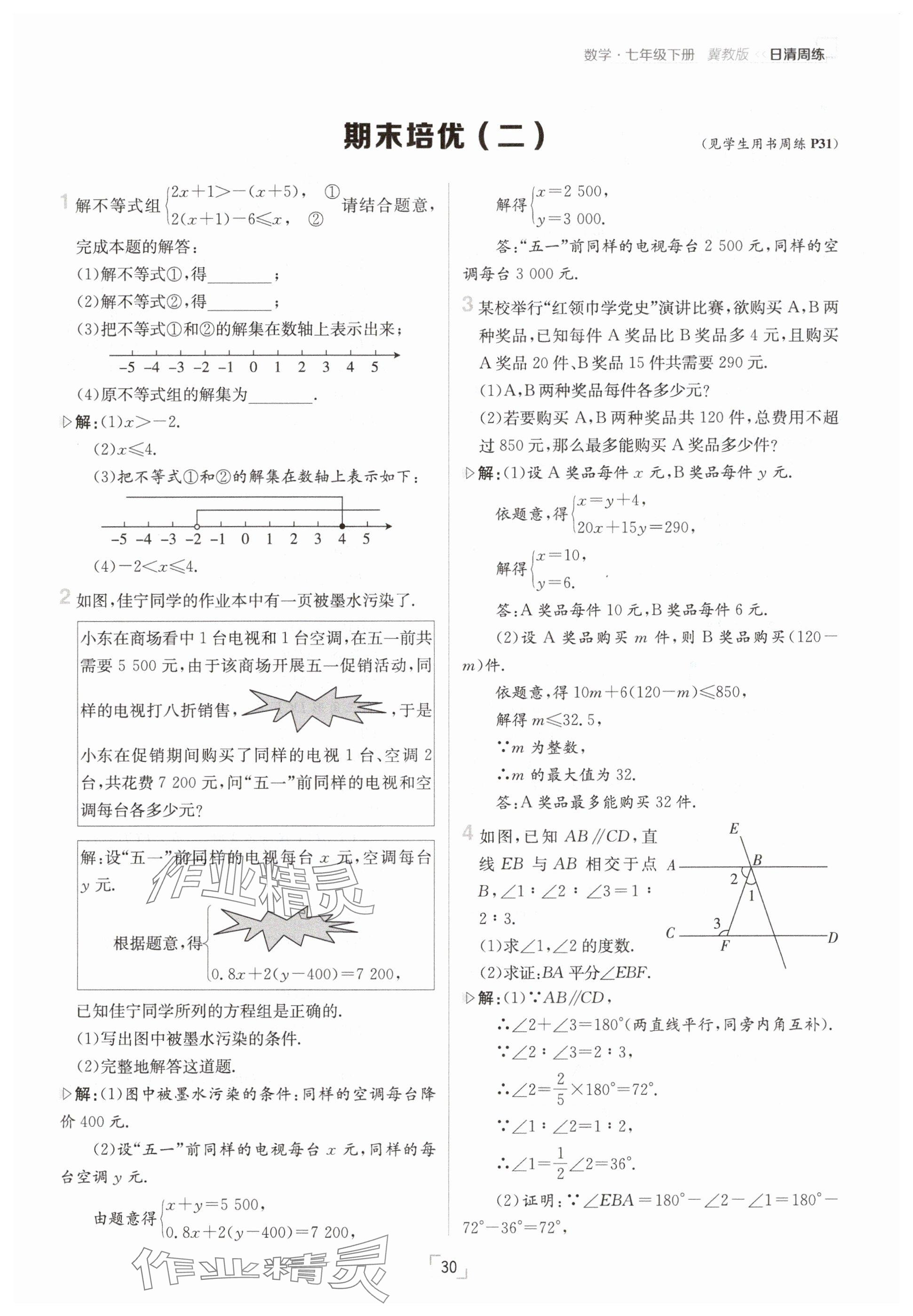 注:目前有些书本章节名称可能整理的还不是很完善,但都是按照顺序排列的,请同学们按照顺序仔细查找。练习册 2025年日清周练七年级数学下册冀教版 答案主要是用来给同学们做完题方便对答案用的,请勿直接抄袭。