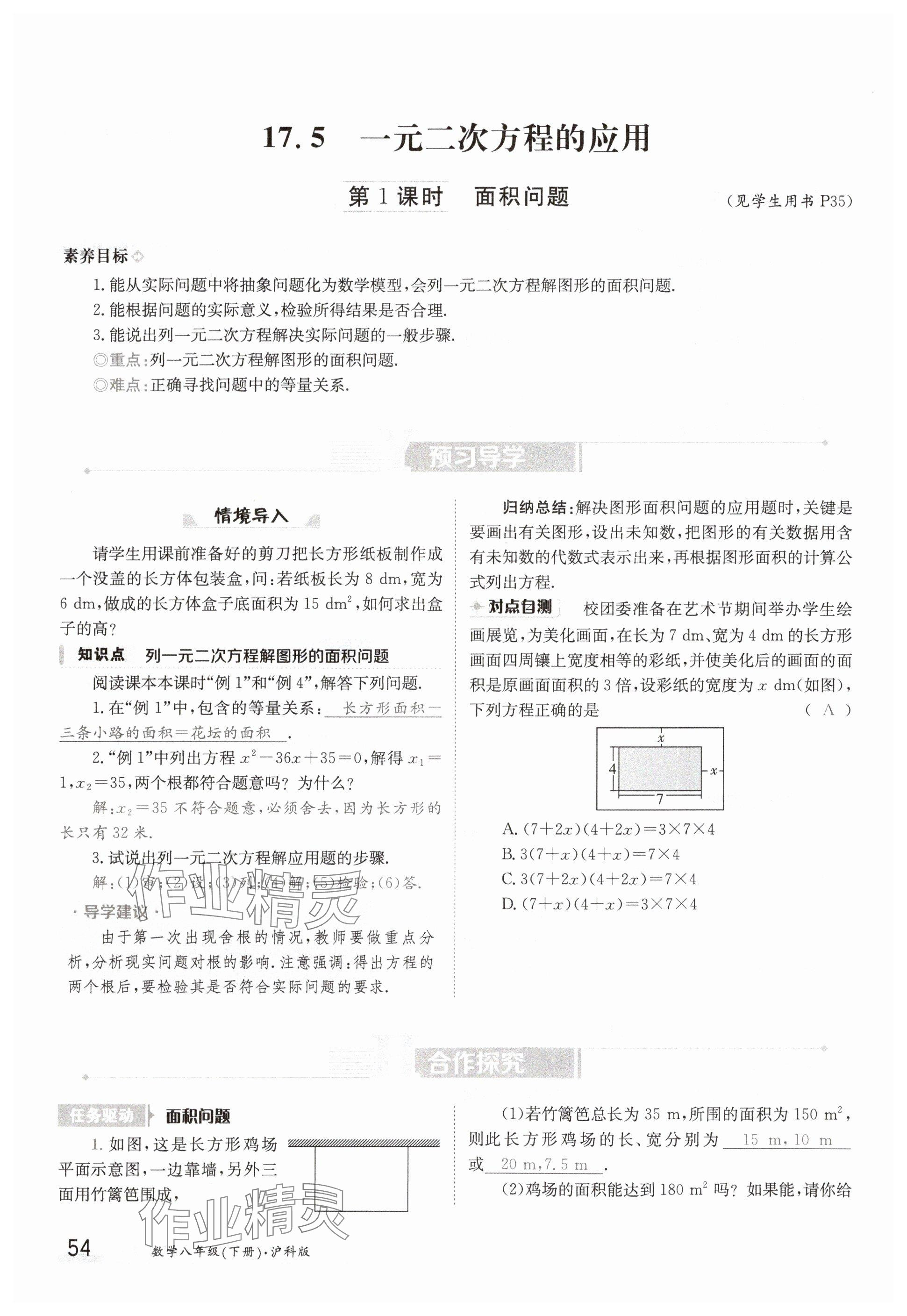 注:目前有些书本章节名称可能整理的还不是很完善,但都是按照顺序排列的,请同学们按照顺序仔细查找。练习册 2025年金太阳导学案八年级数学下册沪科版 答案主要是用来给同学们做完题方便对答案用的,请勿直接抄袭。