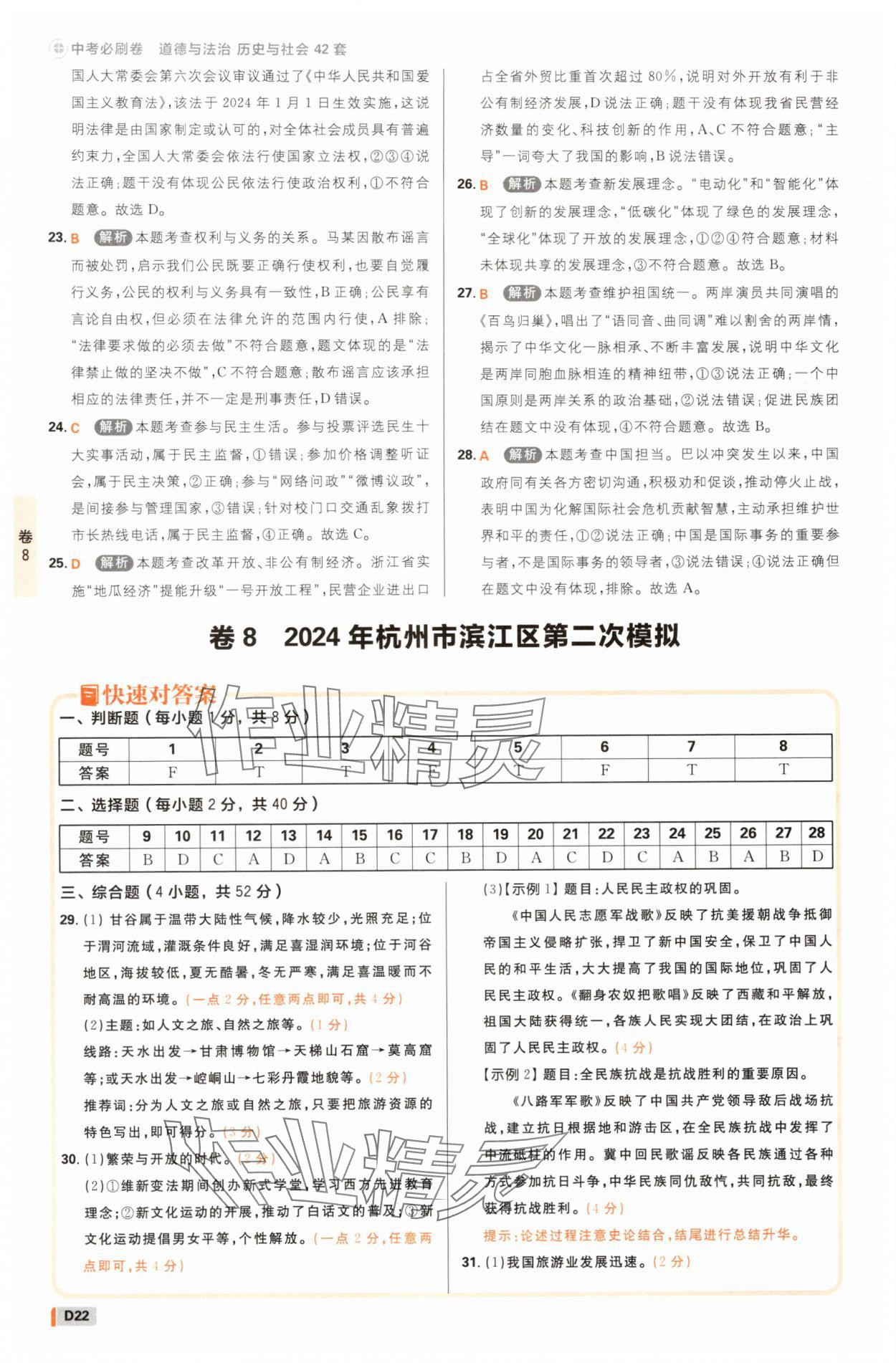 注:目前有些书本章节名称可能整理的还不是很完善,但都是按照顺序排列的,请同学们按照顺序仔细查找。练习册 2025年中考必刷卷42套历史与社会道德与法治浙江专版 答案主要是用来给同学们做完题方便对答案用的,请勿直接抄袭。