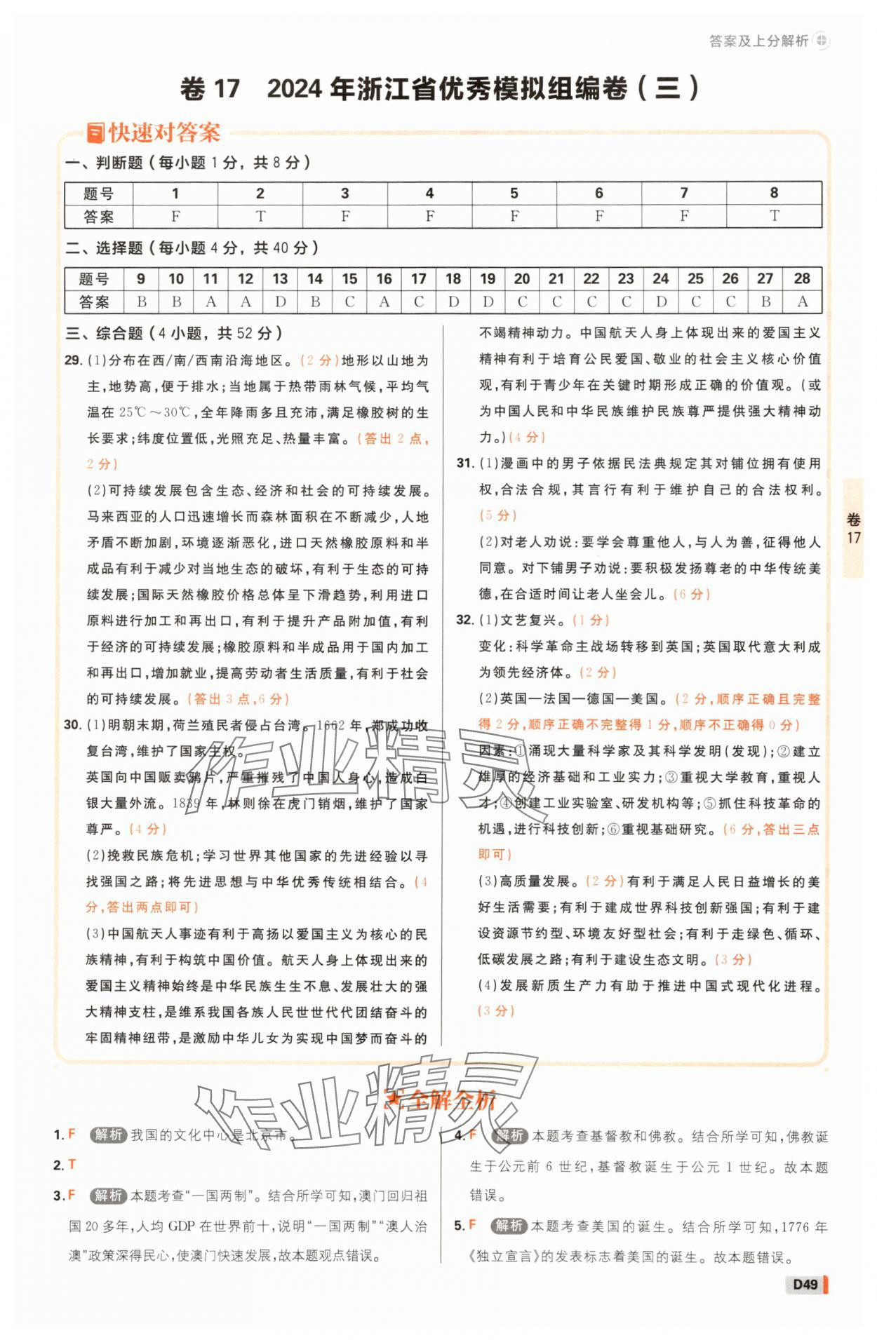 注:目前有些书本章节名称可能整理的还不是很完善,但都是按照顺序排列的,请同学们按照顺序仔细查找。练习册 2025年中考必刷卷42套历史与社会道德与法治浙江专版 答案主要是用来给同学们做完题方便对答案用的,请勿直接抄袭。