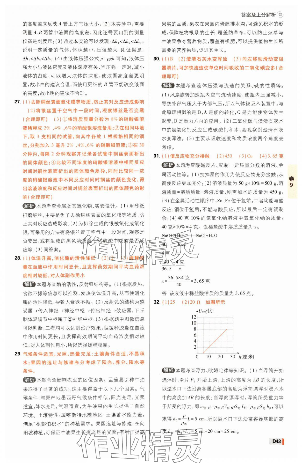 注:目前有些书本章节名称可能整理的还不是很完善,但都是按照顺序排列的,请同学们按照顺序仔细查找。练习册 2025年中考必刷卷42套科学浙江专版 答案主要是用来给同学们做完题方便对答案用的,请勿直接抄袭。