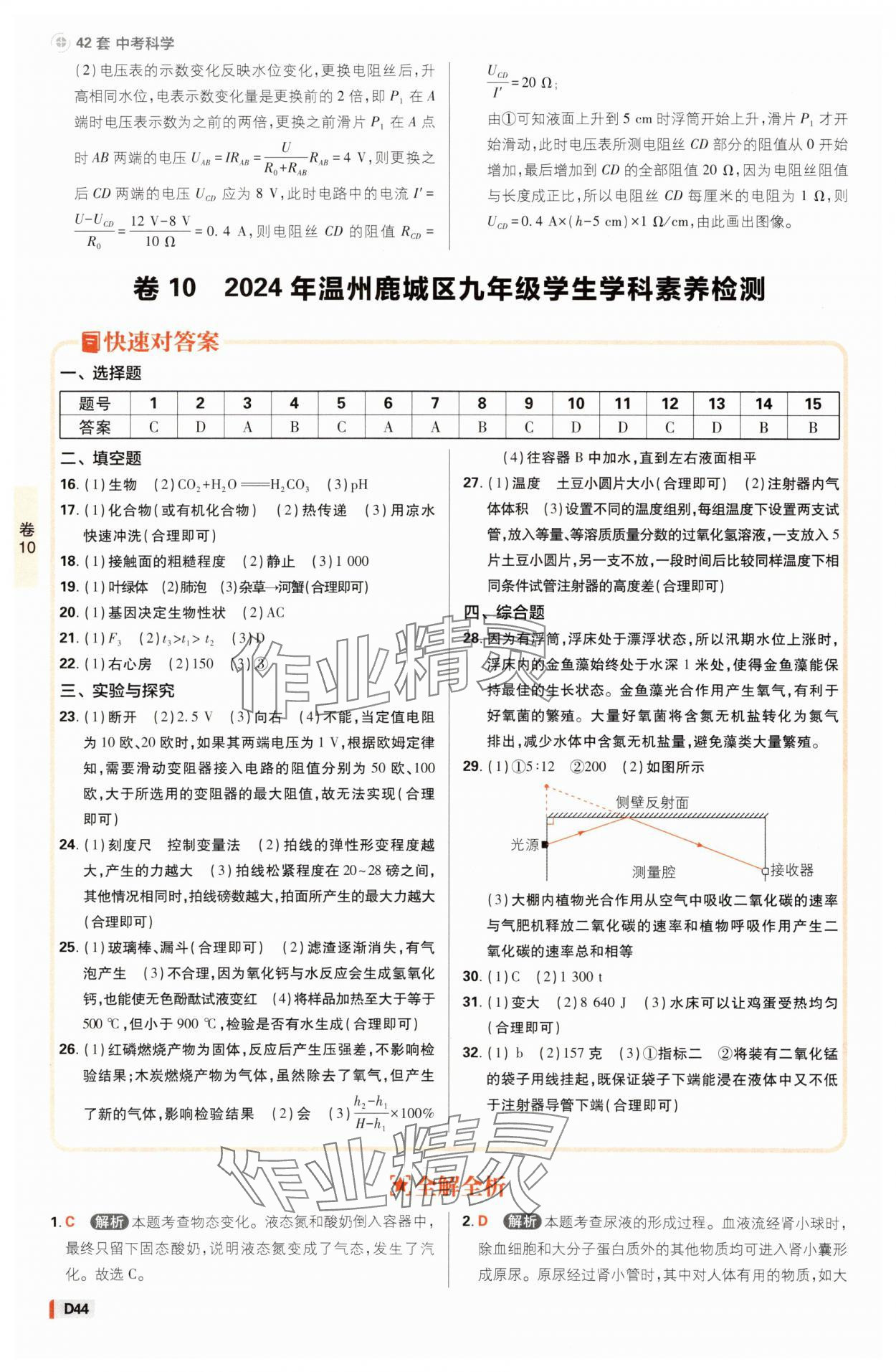 注:目前有些书本章节名称可能整理的还不是很完善,但都是按照顺序排列的,请同学们按照顺序仔细查找。练习册 2025年中考必刷卷42套科学浙江专版 答案主要是用来给同学们做完题方便对答案用的,请勿直接抄袭。