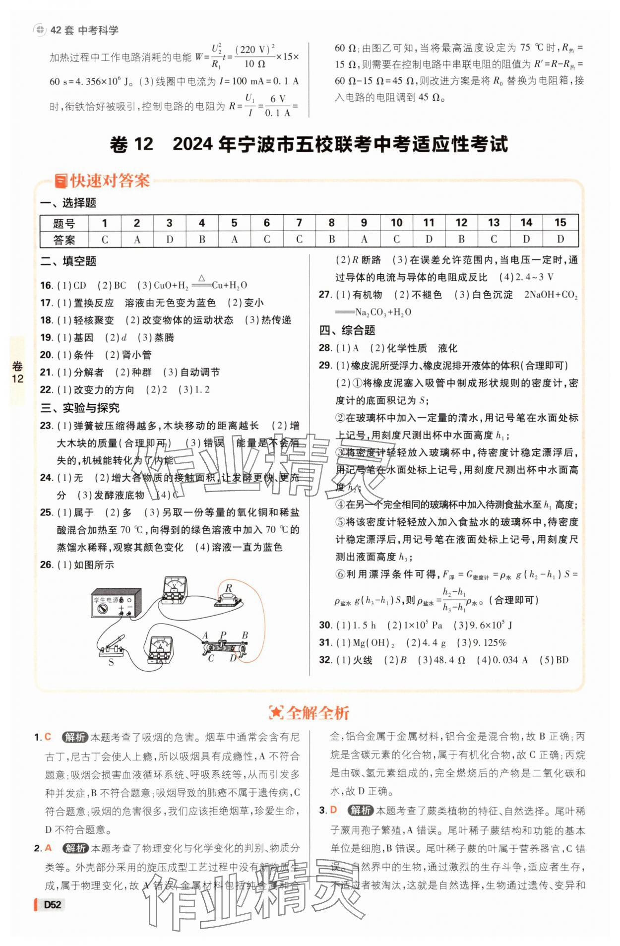 注:目前有些书本章节名称可能整理的还不是很完善,但都是按照顺序排列的,请同学们按照顺序仔细查找。练习册 2025年中考必刷卷42套科学浙江专版 答案主要是用来给同学们做完题方便对答案用的,请勿直接抄袭。