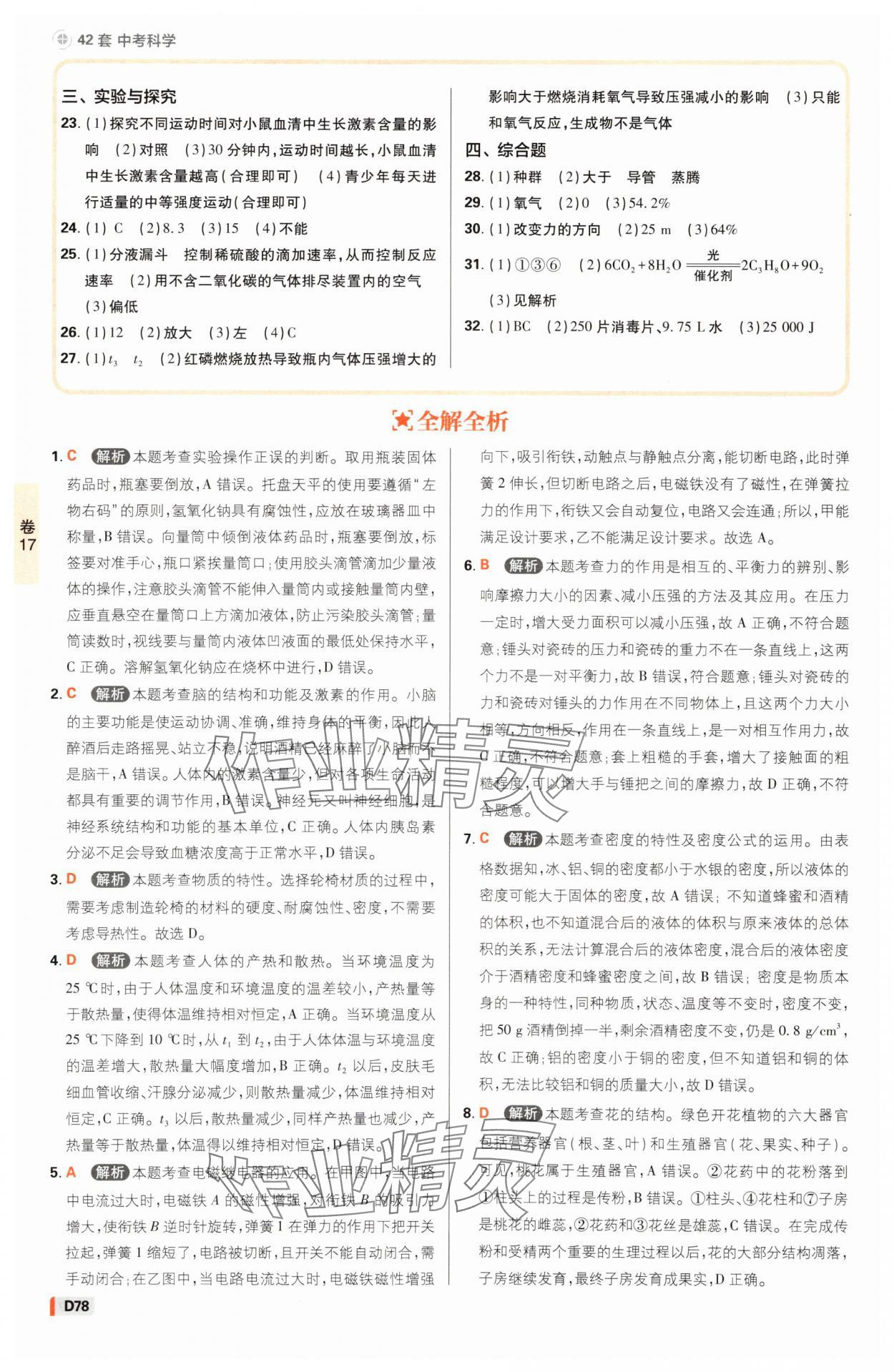 注:目前有些书本章节名称可能整理的还不是很完善,但都是按照顺序排列的,请同学们按照顺序仔细查找。练习册 2025年中考必刷卷42套科学浙江专版 答案主要是用来给同学们做完题方便对答案用的,请勿直接抄袭。