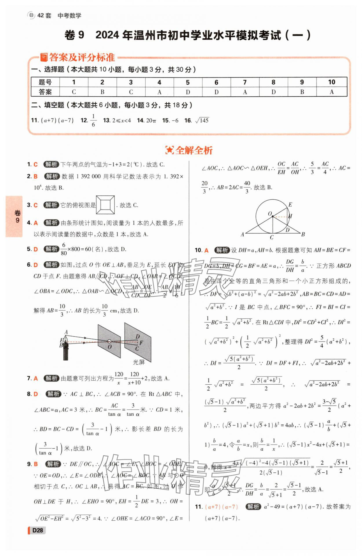 注:目前有些书本章节名称可能整理的还不是很完善,但都是按照顺序排列的,请同学们按照顺序仔细查找。练习册 2025年中考必刷卷42套数学浙江专版 答案主要是用来给同学们做完题方便对答案用的,请勿直接抄袭。