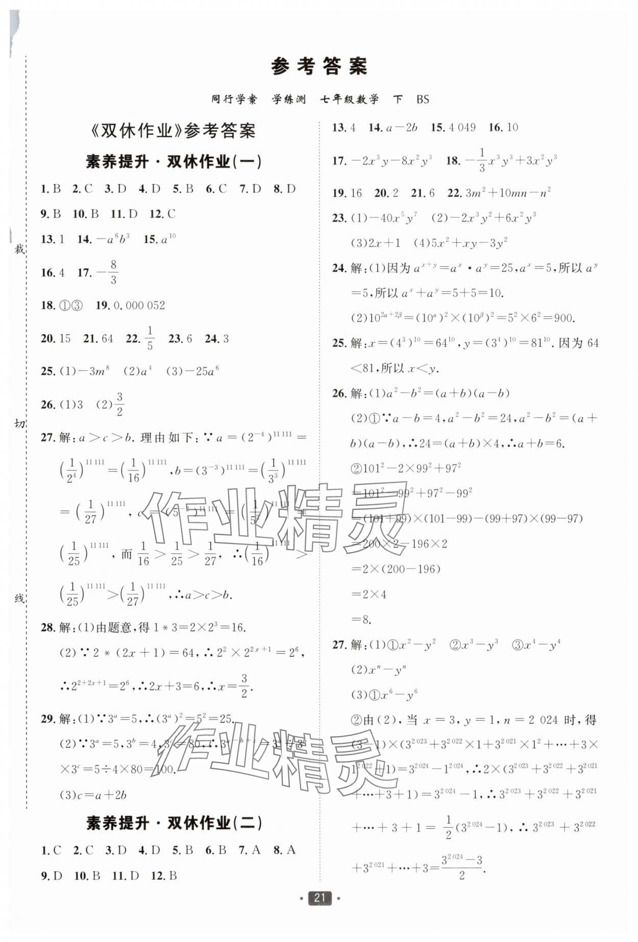 注:目前有些书本章节名称可能整理的还不是很完善,但都是按照顺序排列的,请同学们按照顺序仔细查找。练习册 2025年同行学案学练测七年级数学下册北师大版 答案主要是用来给同学们做完题方便对答案用的,请勿直接抄袭。