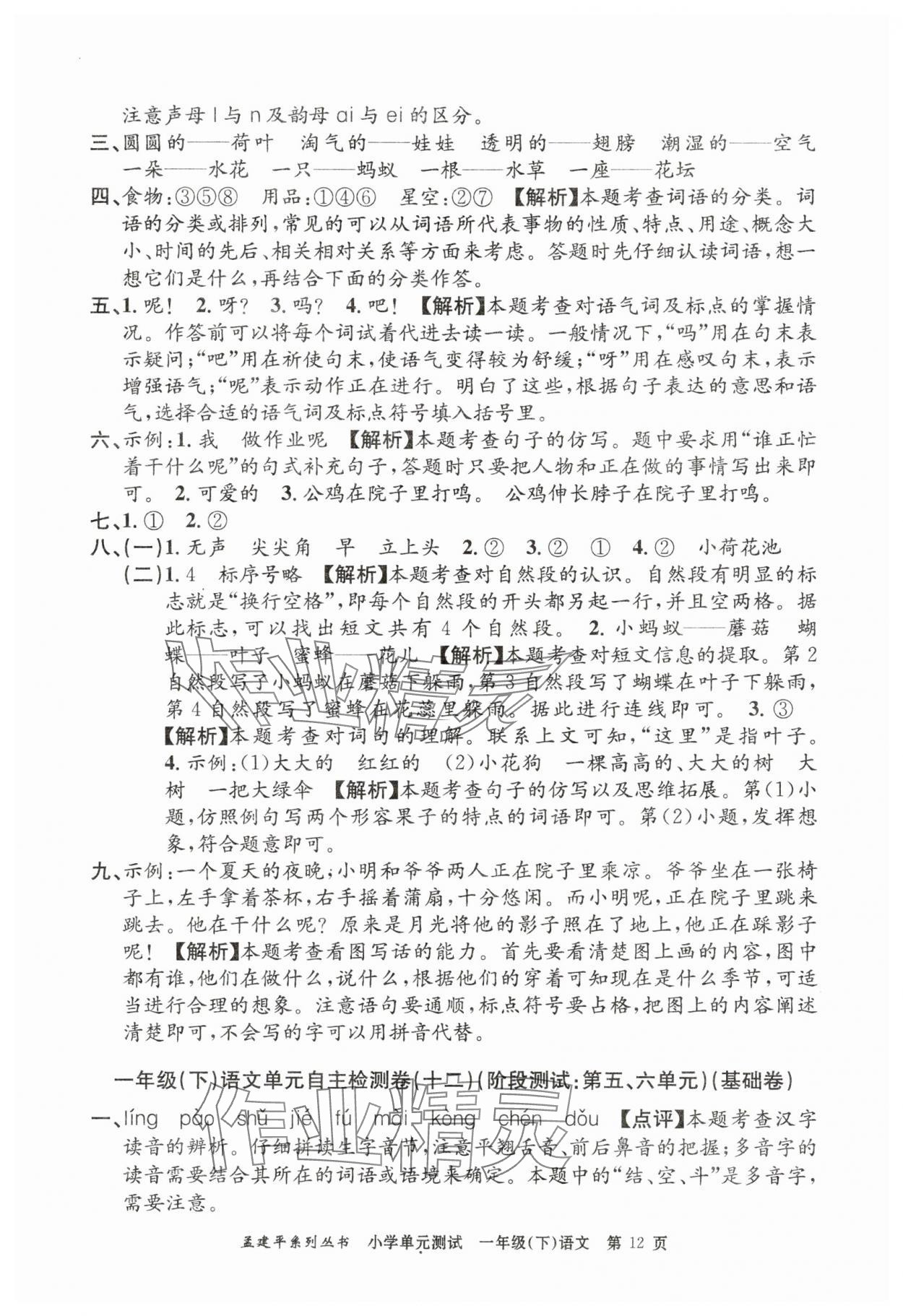 注:目前有些书本章节名称可能整理的还不是很完善,但都是按照顺序排列的,请同学们按照顺序仔细查找。练习册 2025年孟建平单元测试一年级语文下册人教版 答案主要是用来给同学们做完题方便对答案用的,请勿直接抄袭。