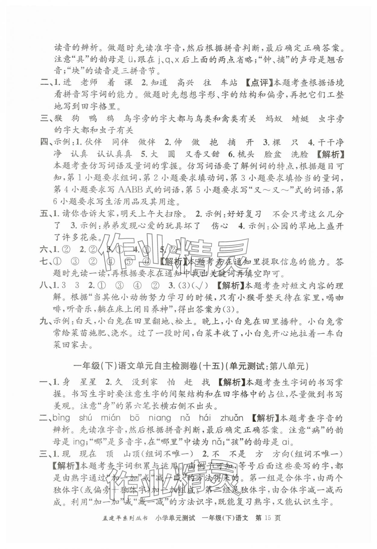注:目前有些书本章节名称可能整理的还不是很完善,但都是按照顺序排列的,请同学们按照顺序仔细查找。练习册 2025年孟建平单元测试一年级语文下册人教版 答案主要是用来给同学们做完题方便对答案用的,请勿直接抄袭。