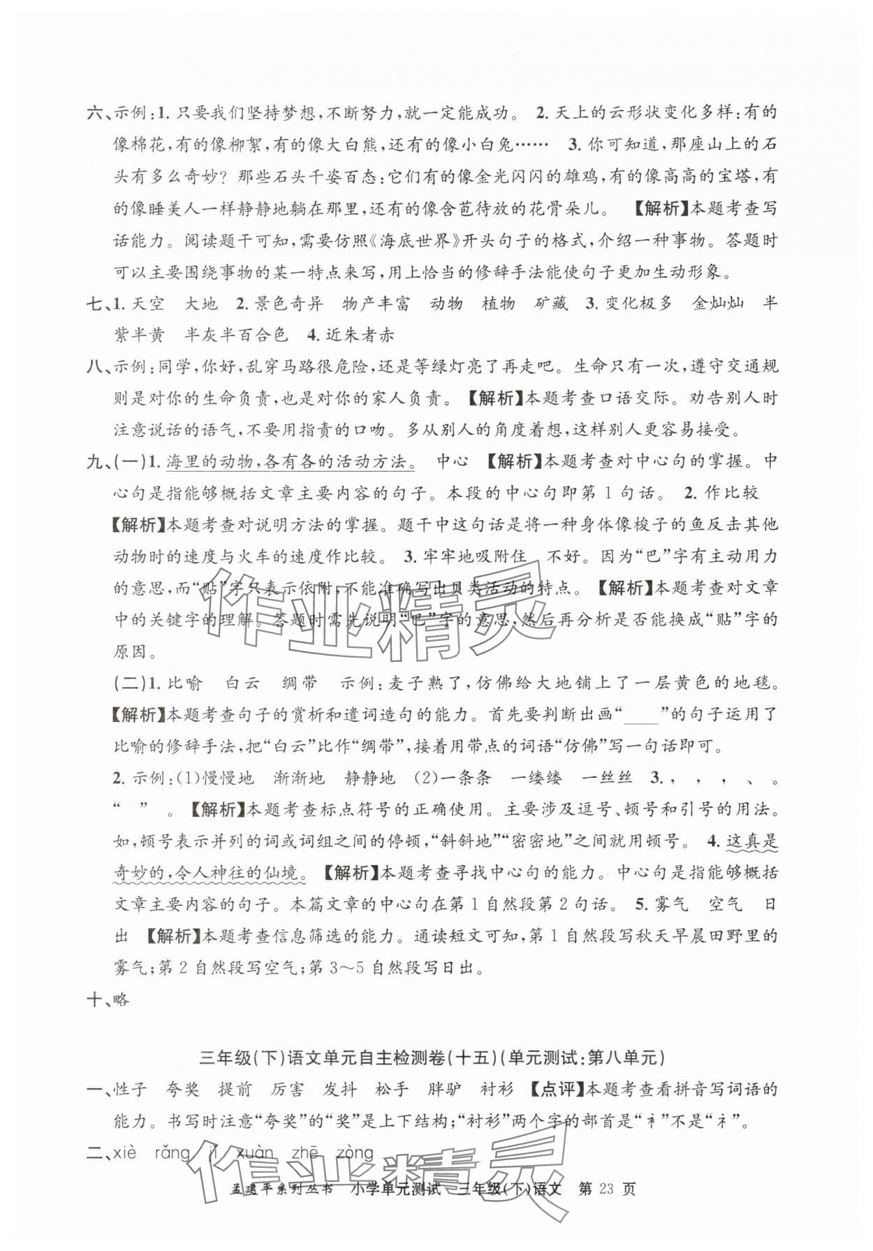 注:目前有些书本章节名称可能整理的还不是很完善,但都是按照顺序排列的,请同学们按照顺序仔细查找。练习册 2025年孟建平单元测试三年级语文下册人教版 答案主要是用来给同学们做完题方便对答案用的,请勿直接抄袭。