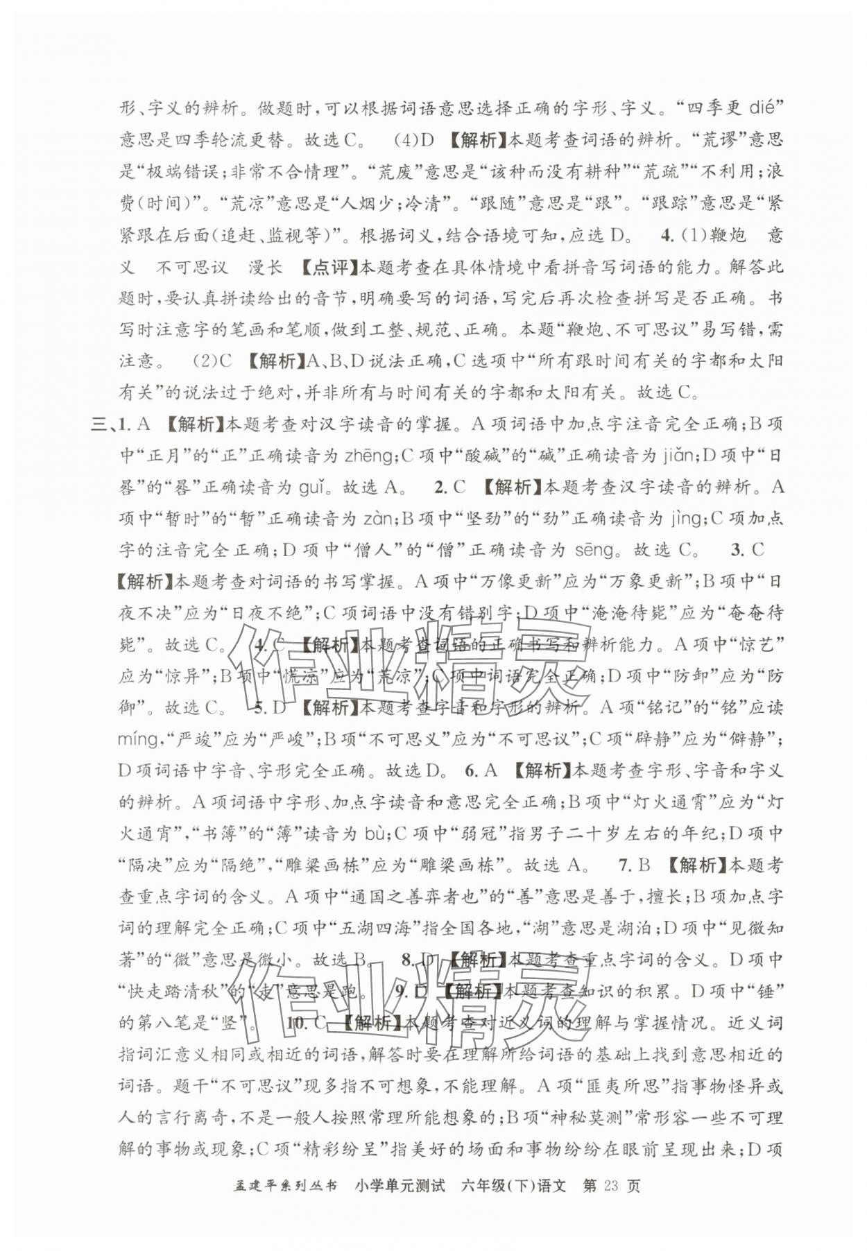 注:目前有些书本章节名称可能整理的还不是很完善,但都是按照顺序排列的,请同学们按照顺序仔细查找。练习册 2025年孟建平单元测试六年级语文下册人教版 答案主要是用来给同学们做完题方便对答案用的,请勿直接抄袭。