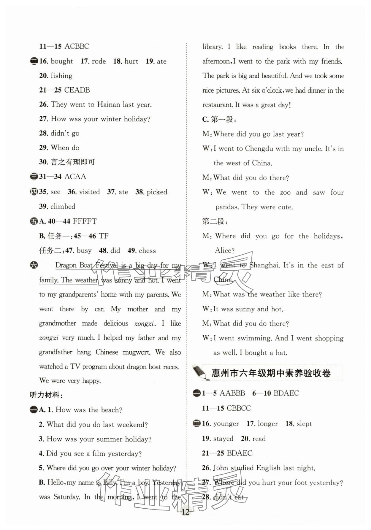 2025年状元坊全程突破导练测六年级英语下册人教版惠州专版