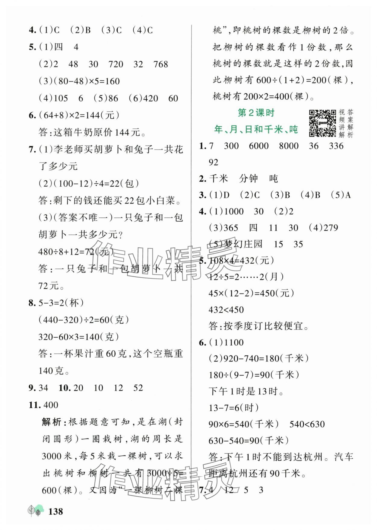 注:目前有些书本章节名称可能整理的还不是很完善,但都是按照顺序排列的,请同学们按照顺序仔细查找。练习册 2025年绿卡提优特训三年级数学下册苏教版江苏专版 答案主要是用来给同学们做完题方便对答案用的,请勿直接抄袭。