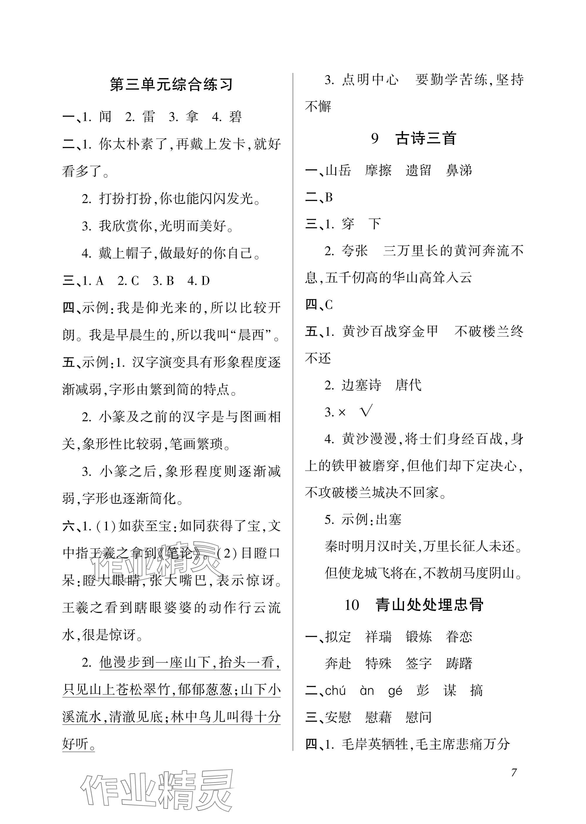 注:目前有些书本章节名称可能整理的还不是很完善,但都是按照顺序排列的,请同学们按照顺序仔细查找。练习册 2025年配套练习与检测五年级语文下册人教版 答案主要是用来给同学们做完题方便对答案用的,请勿直接抄袭。