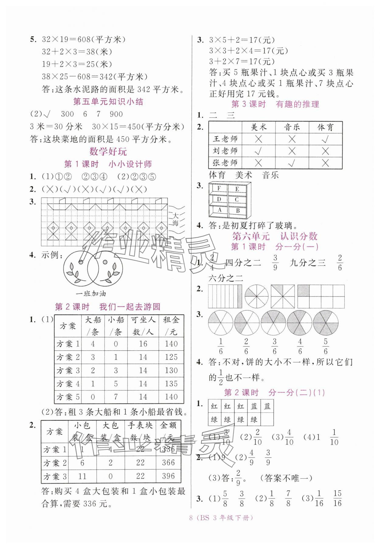 注:目前有些书本章节名称可能整理的还不是很完善,但都是按照顺序排列的,请同学们按照顺序仔细查找。练习册 2025年扬帆天天练三年级数学下册北师大版 答案主要是用来给同学们做完题方便对答案用的,请勿直接抄袭。