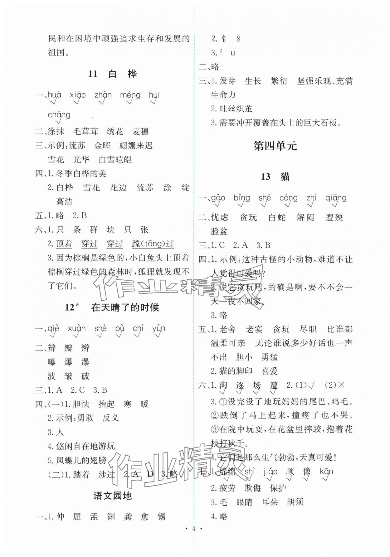 注:目前有些书本章节名称可能整理的还不是很完善,但都是按照顺序排列的,请同学们按照顺序仔细查找。练习册 2025年能力培养与测试四年级语文下册人教版湖南专版 答案主要是用来给同学们做完题方便对答案用的,请勿直接抄袭。