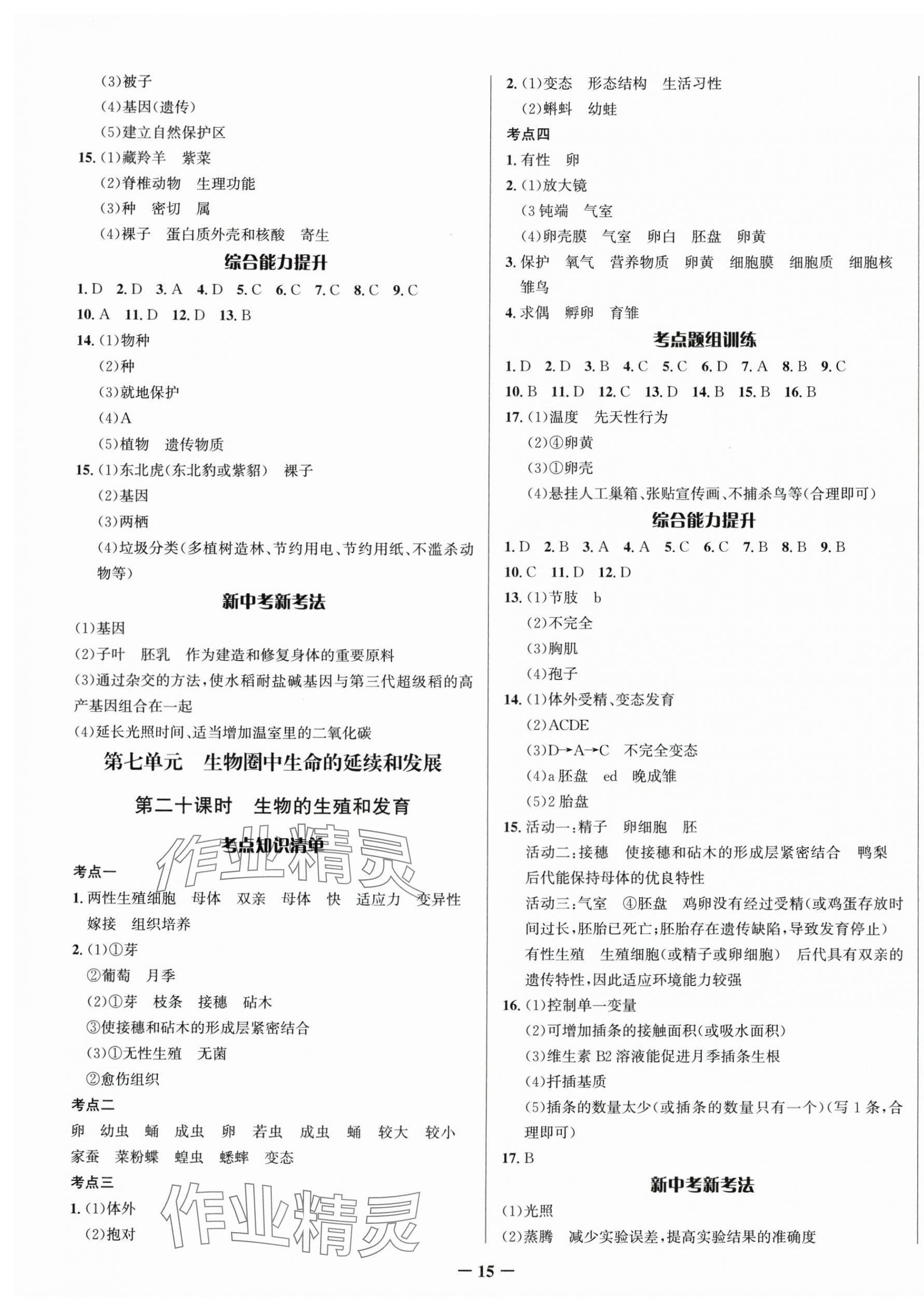 注:目前有些书本章节名称可能整理的还不是很完善,但都是按照顺序排列的,请同学们按照顺序仔细查找。练习册 2025年中考对策生物人教版 答案主要是用来给同学们做完题方便对答案用的,请勿直接抄袭。