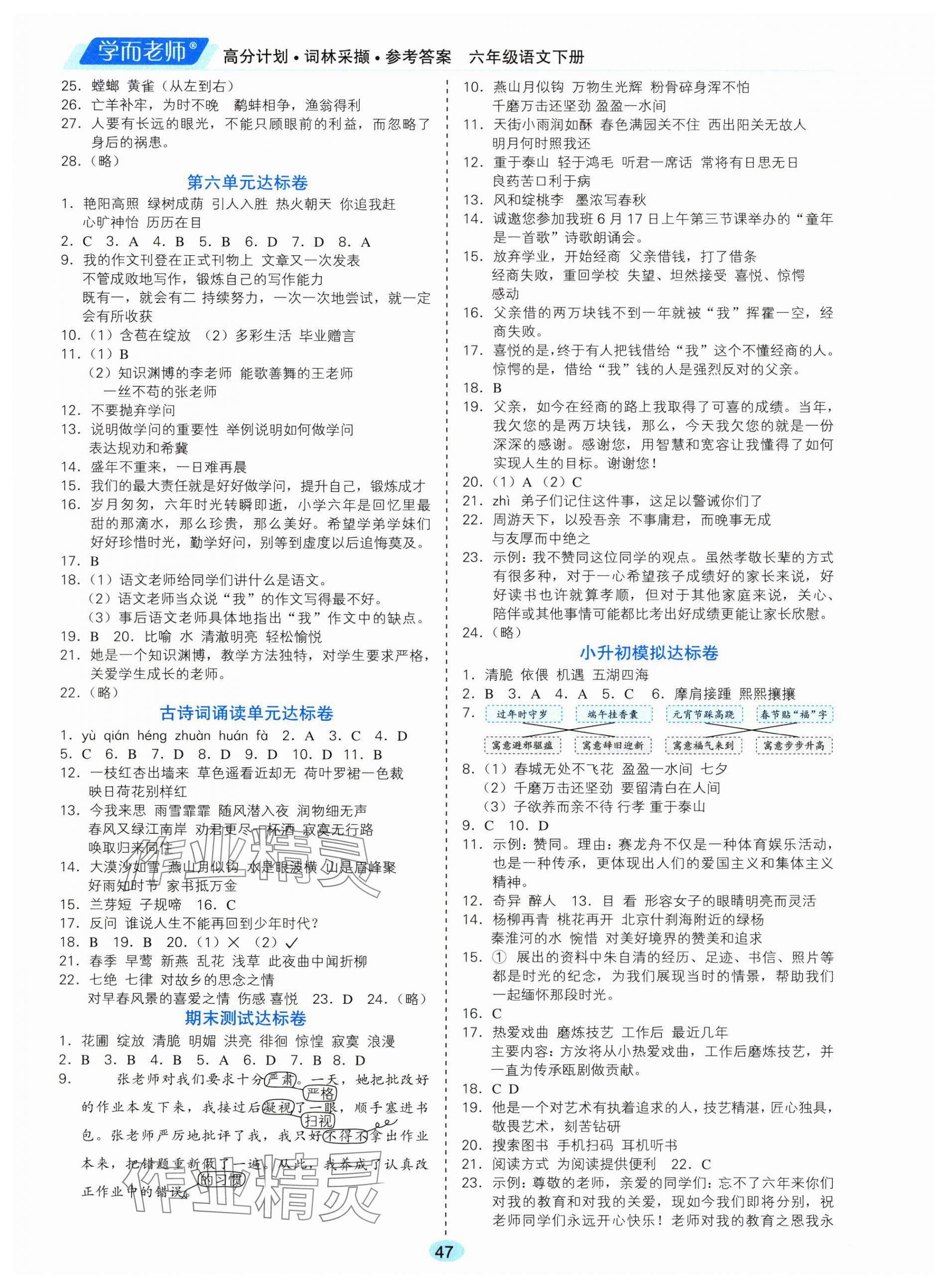 注:目前有些书本章节名称可能整理的还不是很完善,但都是按照顺序排列的,请同学们按照顺序仔细查找。练习册 2025年高分计划词林采撷六年级语文下册人教版 答案主要是用来给同学们做完题方便对答案用的,请勿直接抄袭。