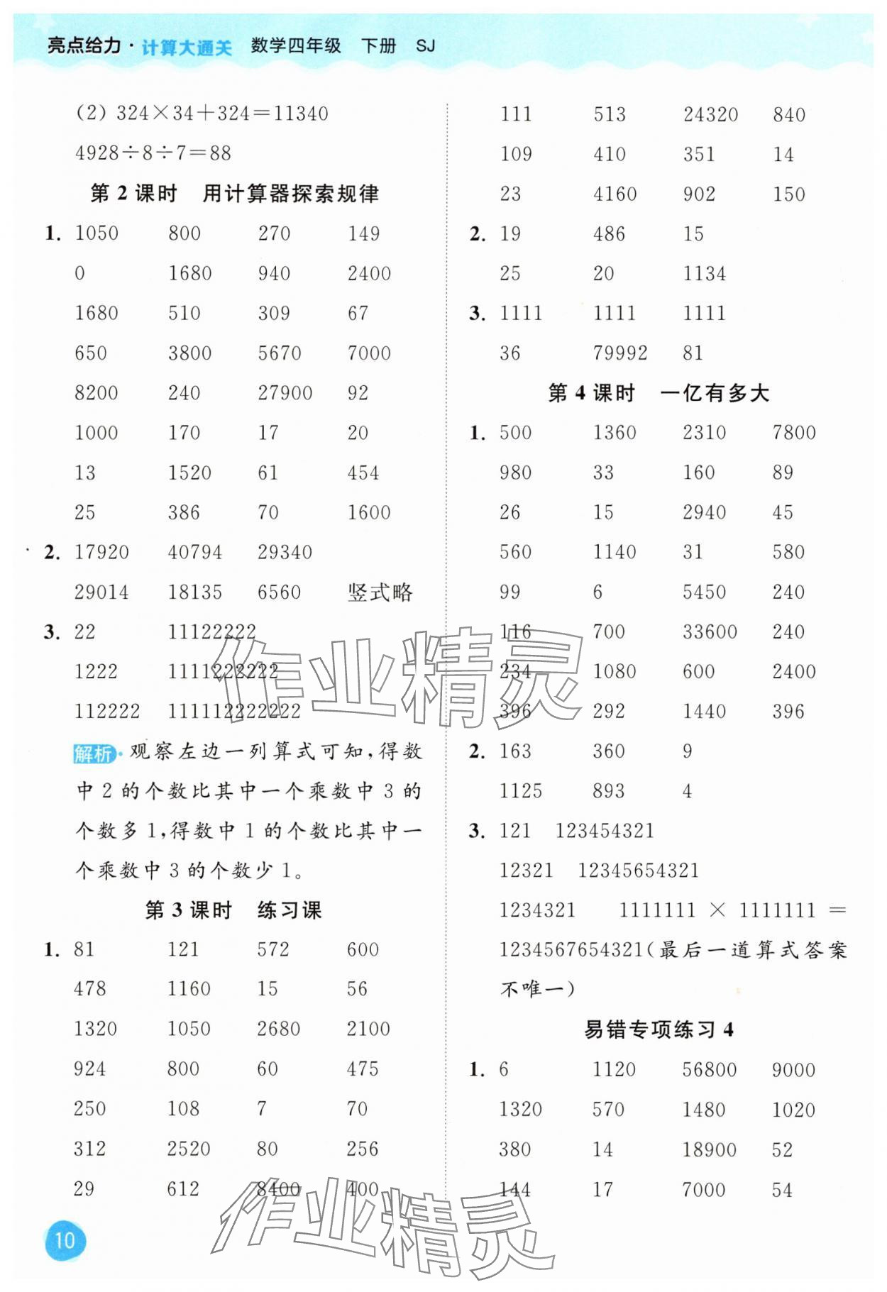 2025年亮点给力计算大通关四年级数学下册苏教版