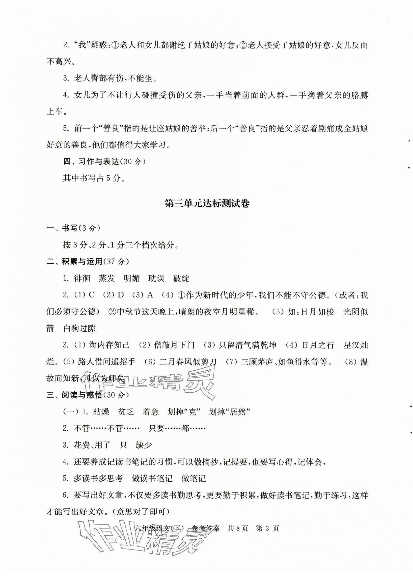 注:目前有些书本章节名称可能整理的还不是很完善,但都是按照顺序排列的,请同学们按照顺序仔细查找。练习册 2025年伴你学单元达标测试卷六年级语文下册人教版 答案主要是用来给同学们做完题方便对答案用的,请勿直接抄袭。