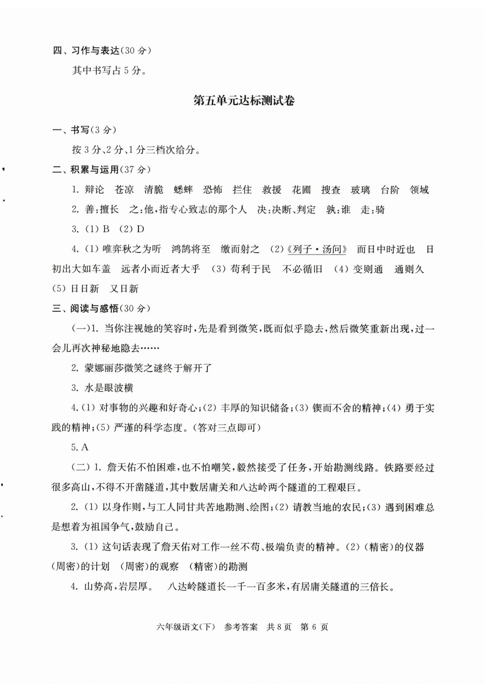 注:目前有些书本章节名称可能整理的还不是很完善,但都是按照顺序排列的,请同学们按照顺序仔细查找。练习册 2025年伴你学单元达标测试卷六年级语文下册人教版 答案主要是用来给同学们做完题方便对答案用的,请勿直接抄袭。