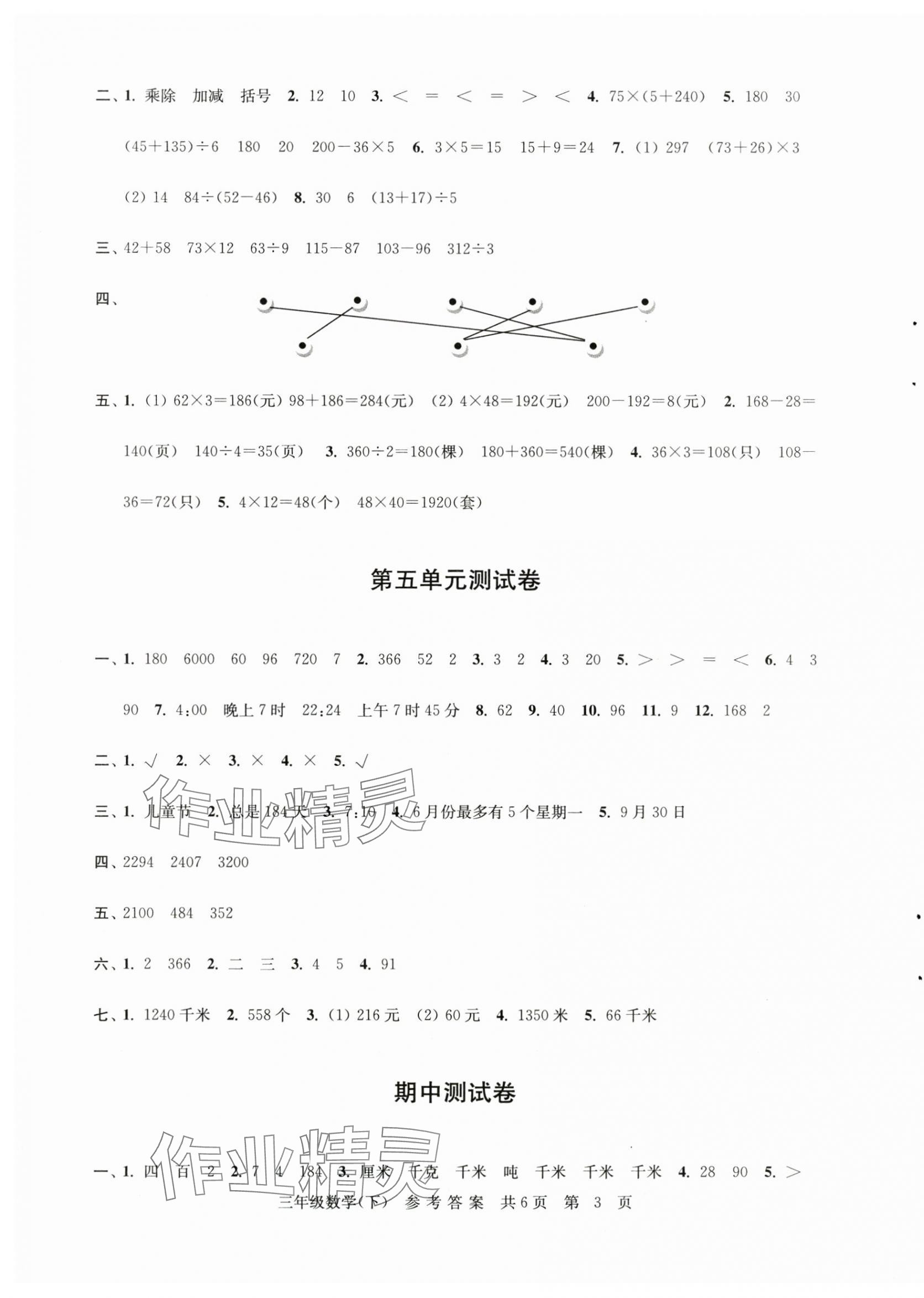 注:目前有些书本章节名称可能整理的还不是很完善,但都是按照顺序排列的,请同学们按照顺序仔细查找。练习册 2025年伴你学单元达标测试卷三年级数学下册苏教版 答案主要是用来给同学们做完题方便对答案用的,请勿直接抄袭。