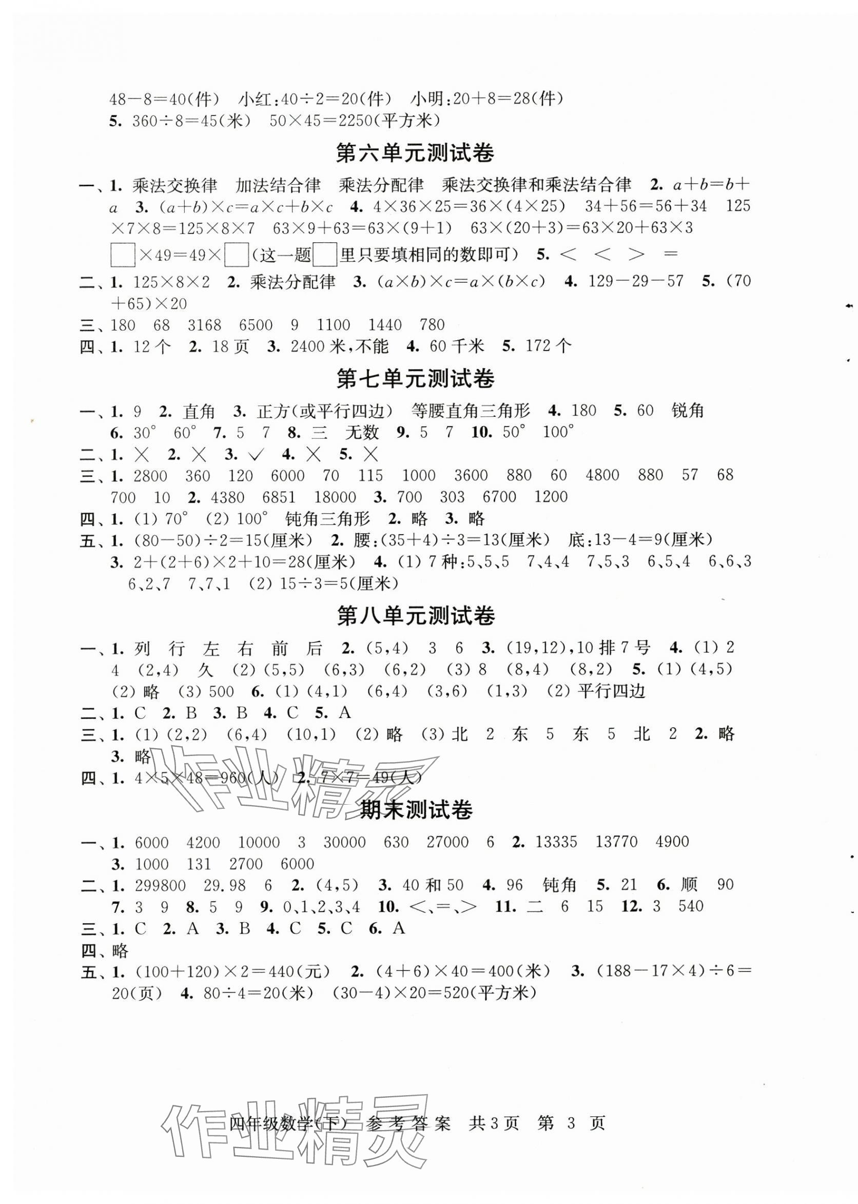 注:目前有些书本章节名称可能整理的还不是很完善,但都是按照顺序排列的,请同学们按照顺序仔细查找。练习册 2025年伴你学单元达标测试卷四年级数学下册苏教版 答案主要是用来给同学们做完题方便对答案用的,请勿直接抄袭。