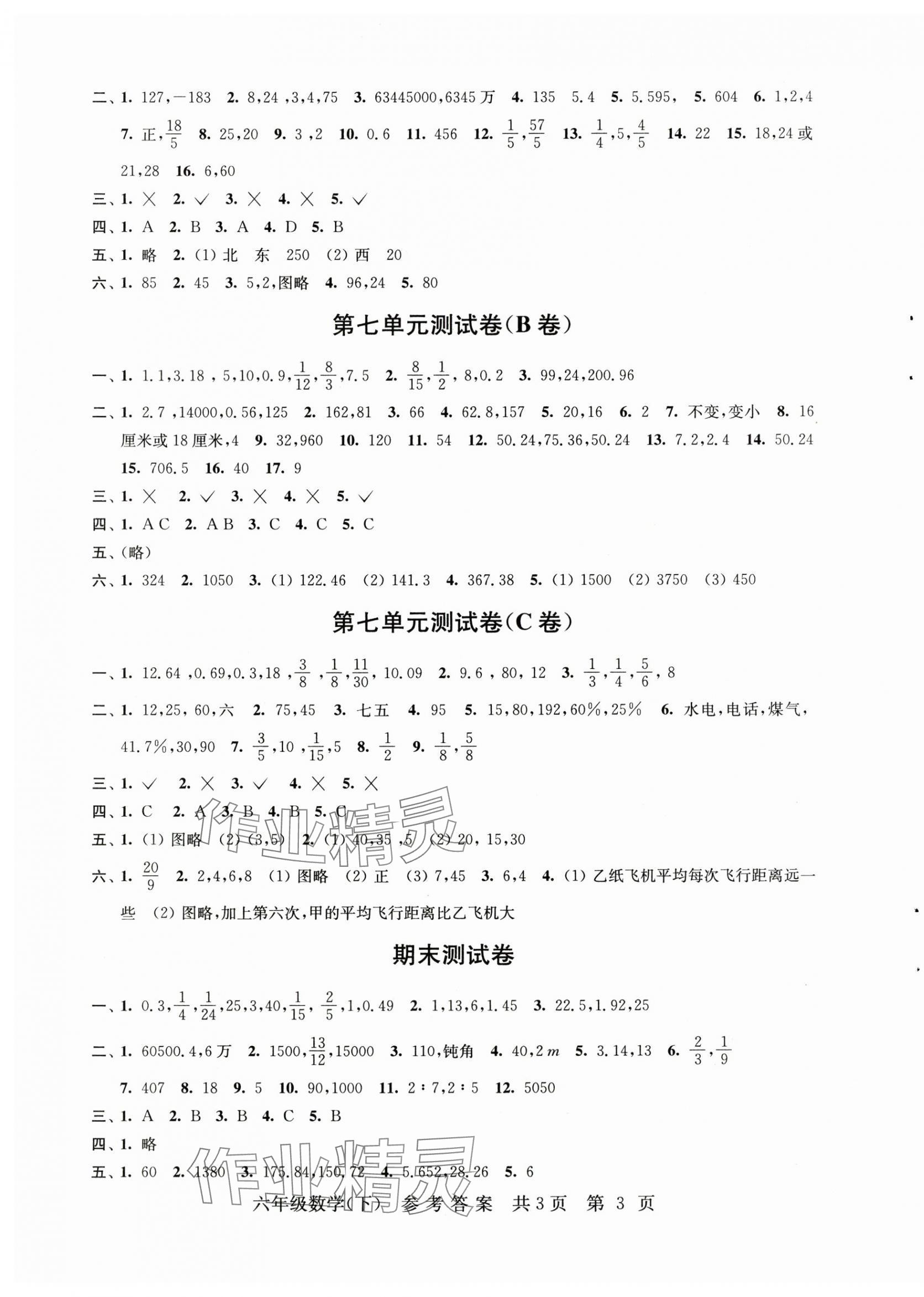 注:目前有些书本章节名称可能整理的还不是很完善,但都是按照顺序排列的,请同学们按照顺序仔细查找。练习册 2025年伴你学单元达标测试卷六年级数学下册苏教版 答案主要是用来给同学们做完题方便对答案用的,请勿直接抄袭。