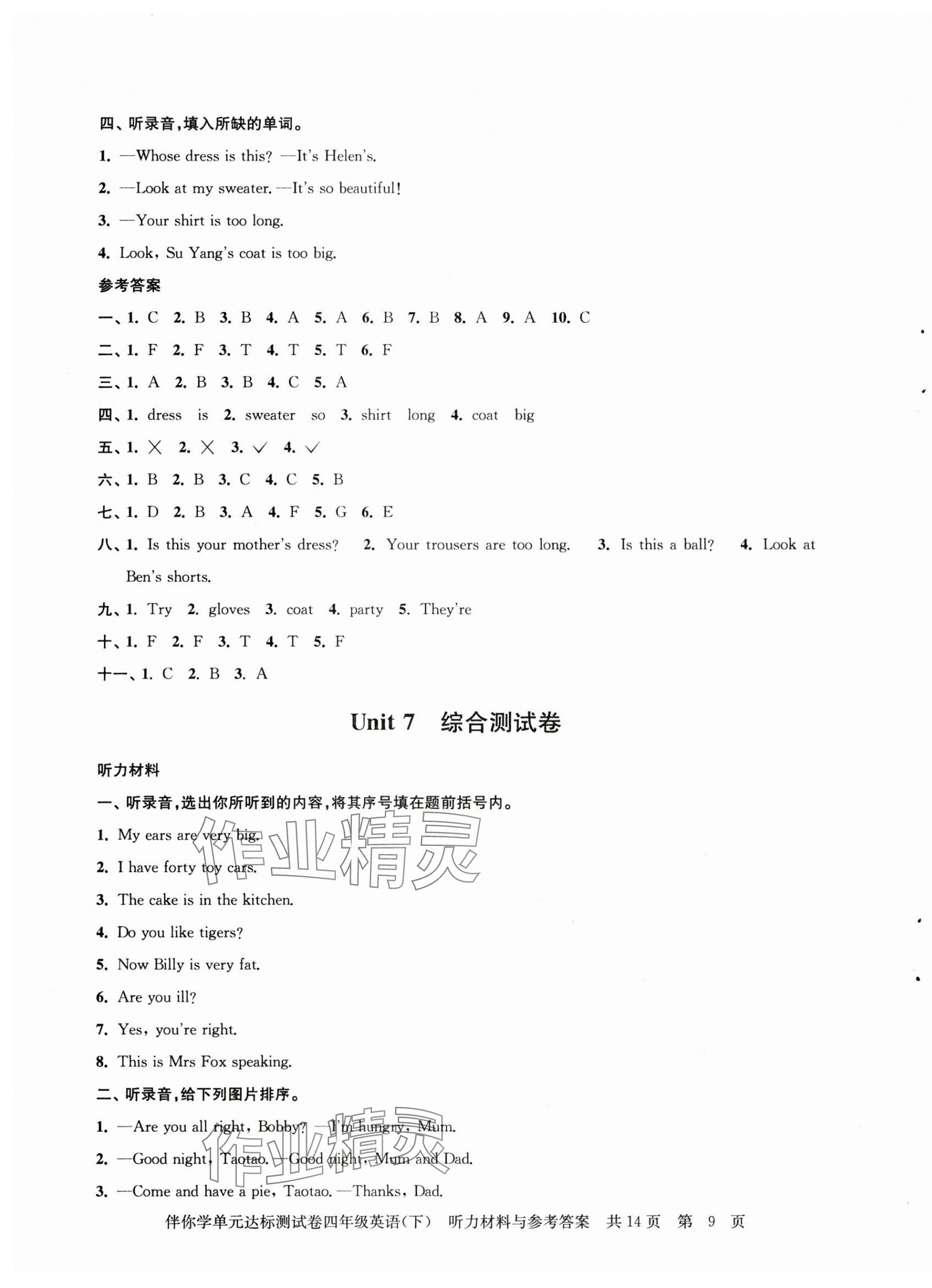 注:目前有些书本章节名称可能整理的还不是很完善,但都是按照顺序排列的,请同学们按照顺序仔细查找。练习册 2025年伴你学单元达标测试卷四年级英语下册译林版 答案主要是用来给同学们做完题方便对答案用的,请勿直接抄袭。