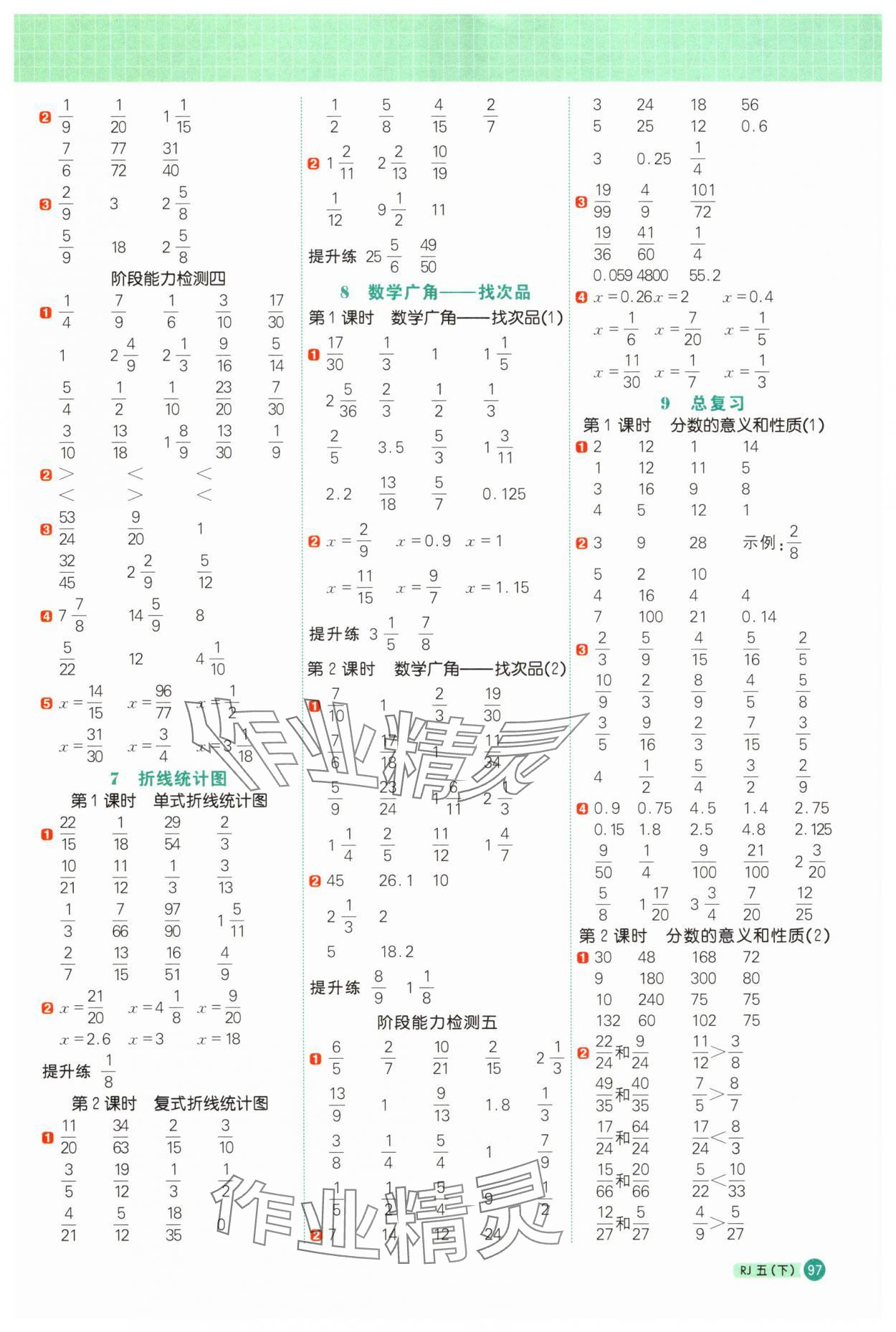 注:目前有些书本章节名称可能整理的还不是很完善,但都是按照顺序排列的,请同学们按照顺序仔细查找。练习册 2025年阳光同学计算小达人五年级数学下册人教版福建专版 答案主要是用来给同学们做完题方便对答案用的,请勿直接抄袭。