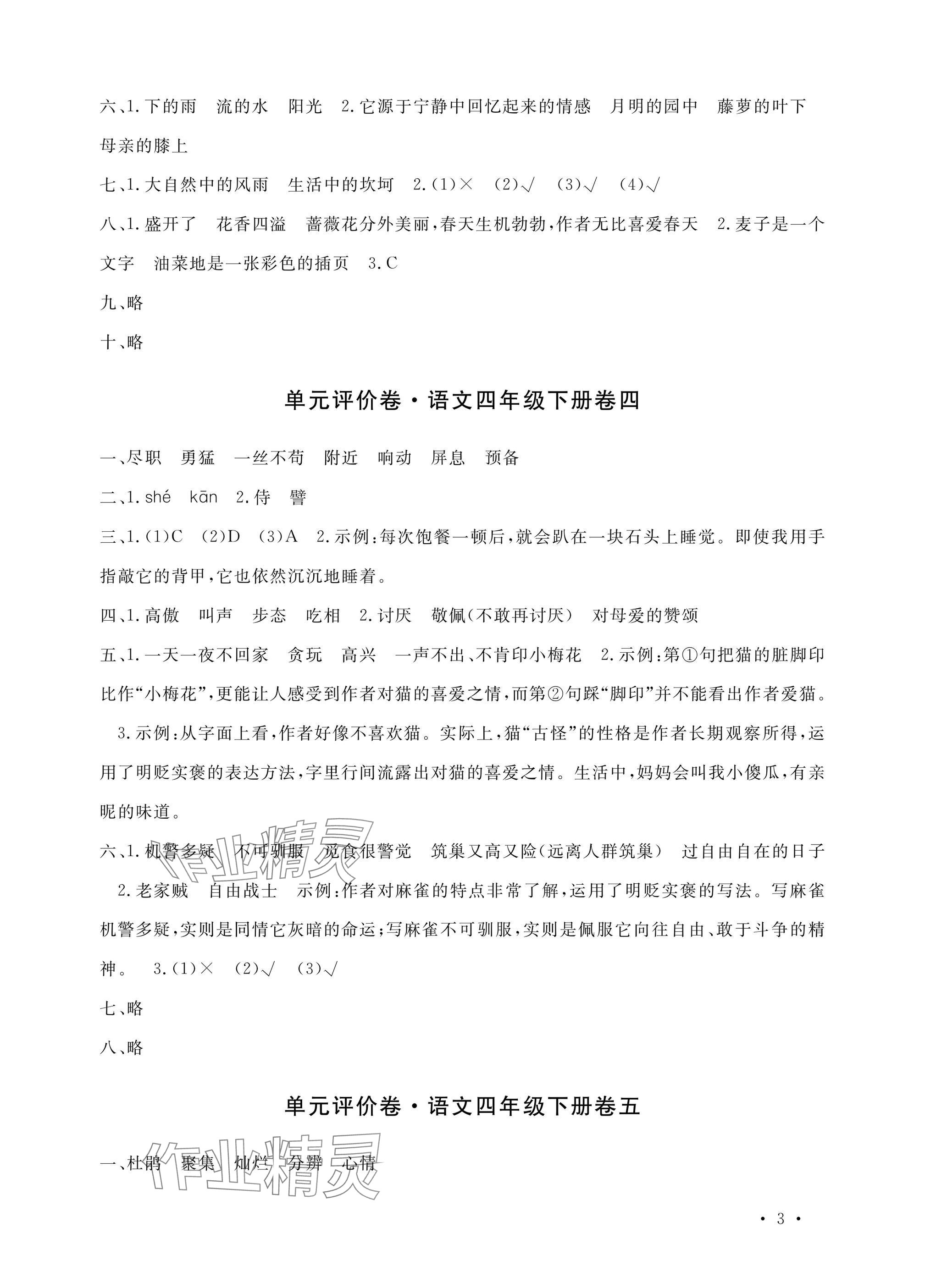 注:目前有些书本章节名称可能整理的还不是很完善,但都是按照顺序排列的,请同学们按照顺序仔细查找。练习册 2025年单元评价卷四年级语文下册人教版宁波出版社 答案主要是用来给同学们做完题方便对答案用的,请勿直接抄袭。