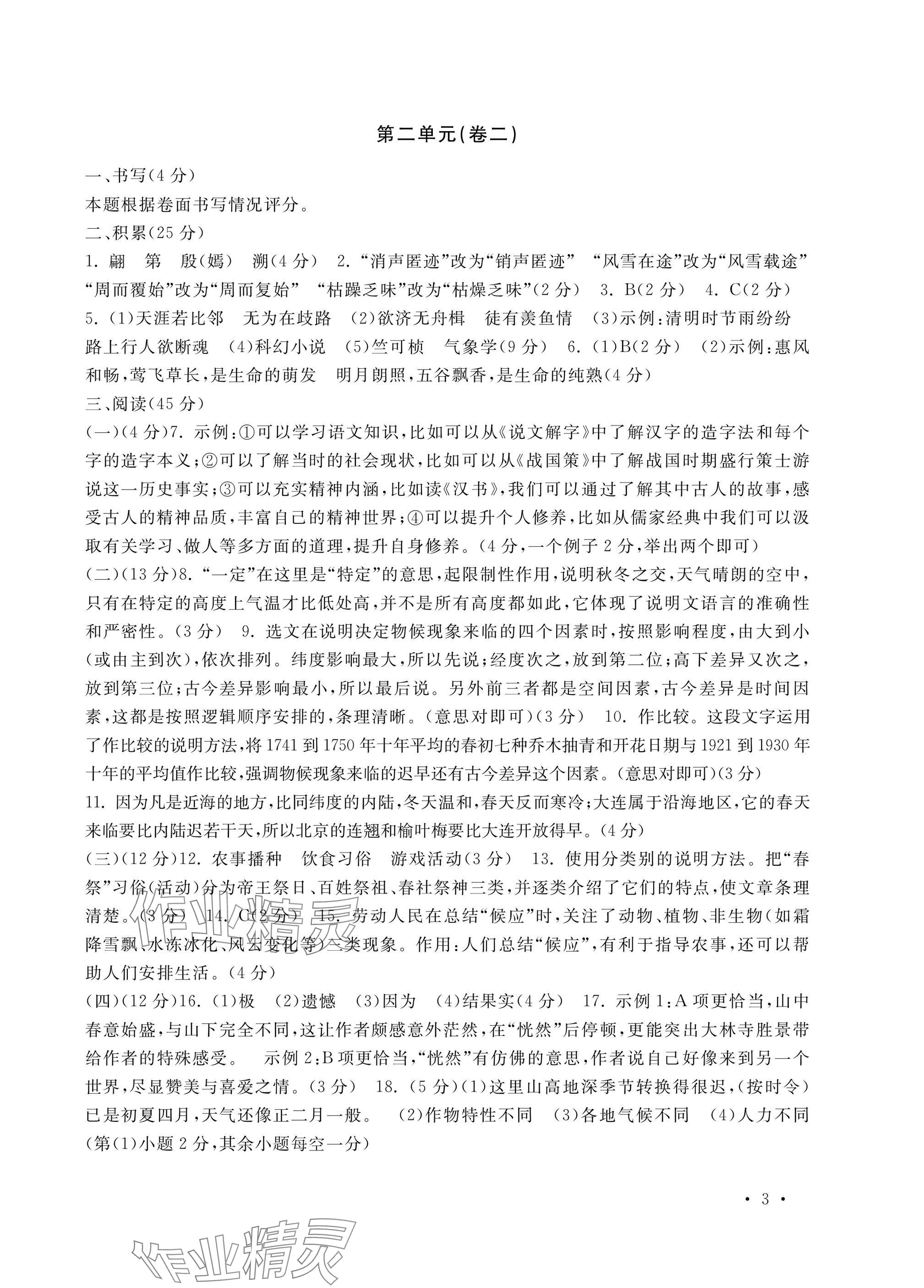 2025年单元评价卷宁波出版社八年级语文下册人教版 参考答案第3页