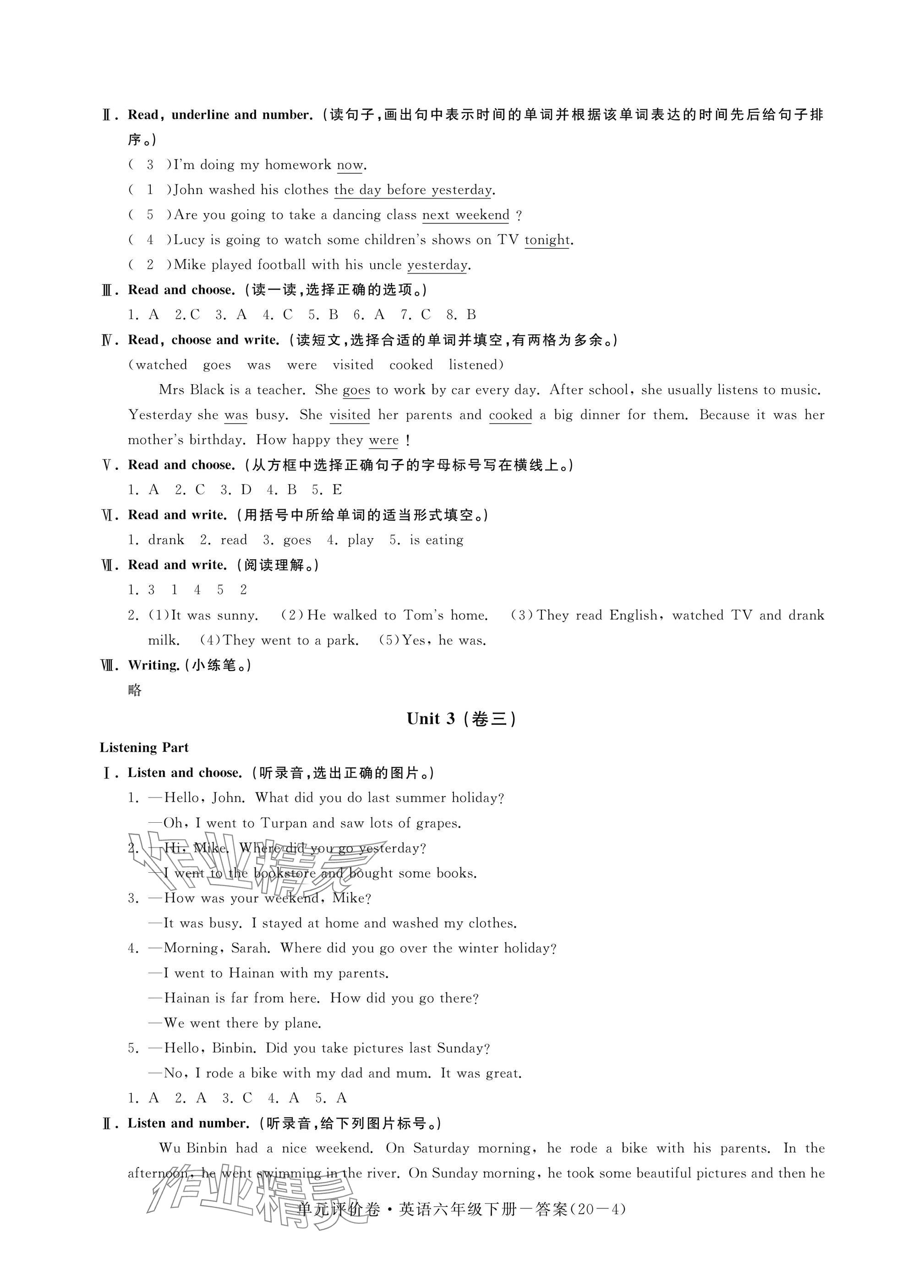 注:目前有些书本章节名称可能整理的还不是很完善,但都是按照顺序排列的,请同学们按照顺序仔细查找。练习册2025年单元评价卷宁波出版社六年级英语下册人教版答案主要是用来给同学们做完题方便对答案用的,请勿直接抄袭。