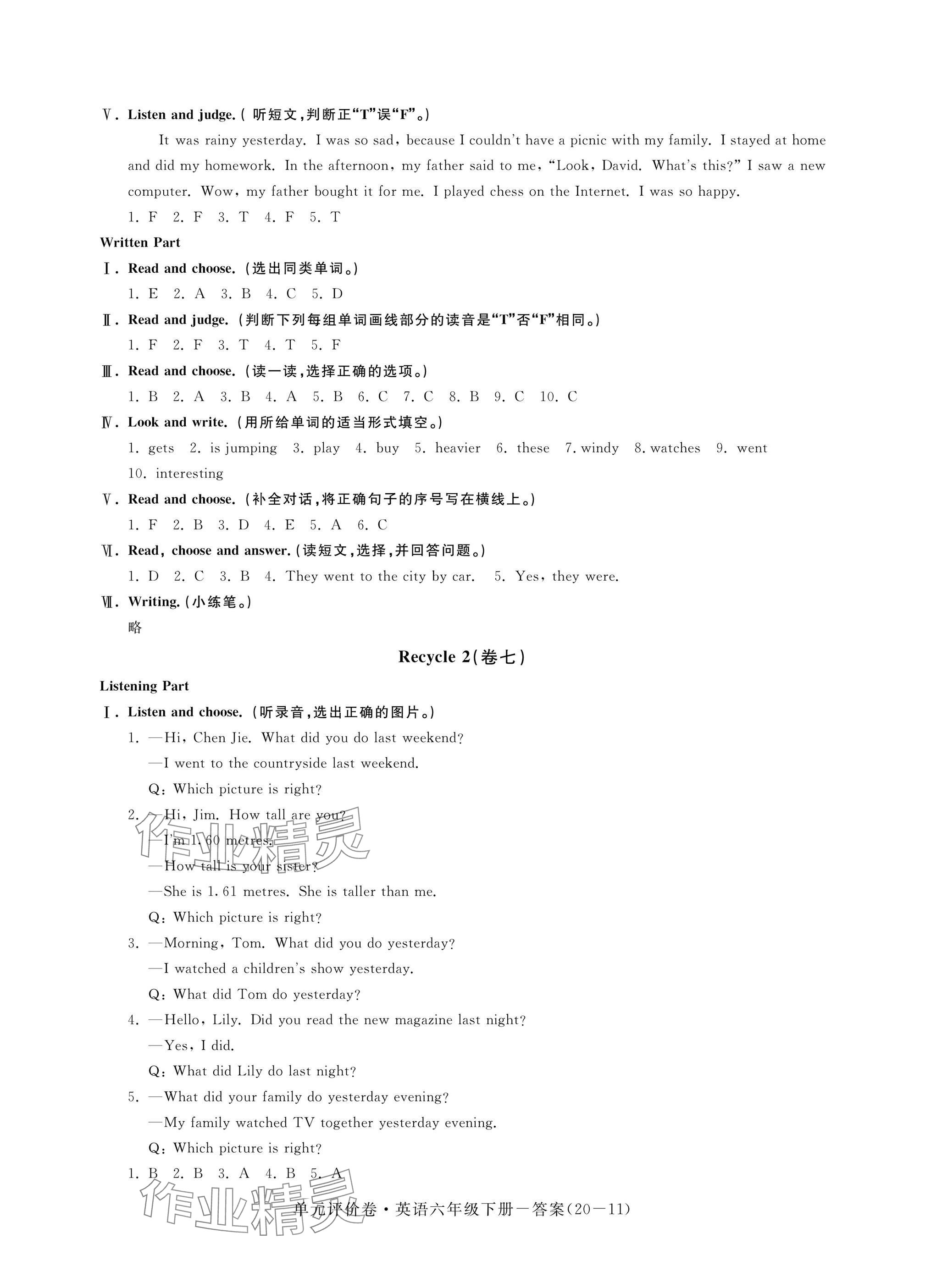 注:目前有些书本章节名称可能整理的还不是很完善,但都是按照顺序排列的,请同学们按照顺序仔细查找。练习册 2025年单元评价卷宁波出版社六年级英语下册人教版 答案主要是用来给同学们做完题方便对答案用的,请勿直接抄袭。
